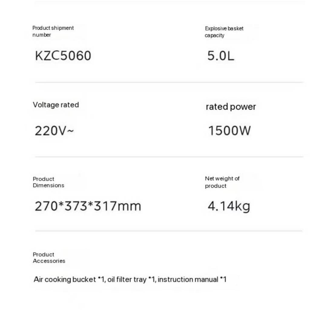 midea Large capacity 5L AirFryer household electric fully automatic French fries machine Air Fryer