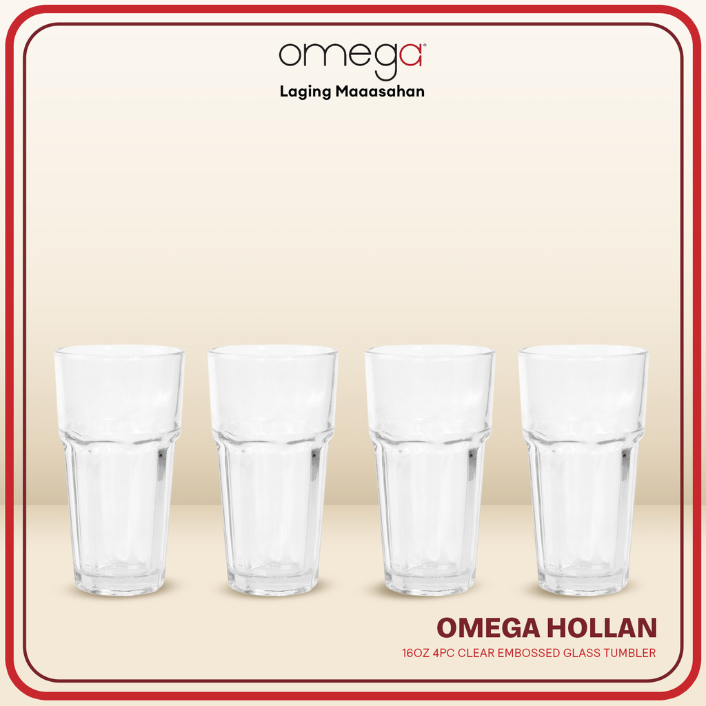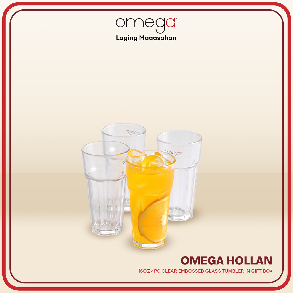 Omega Houseware Hollan 4PC Clear Embossed Glass Tumbler in Gift Box 16OZ