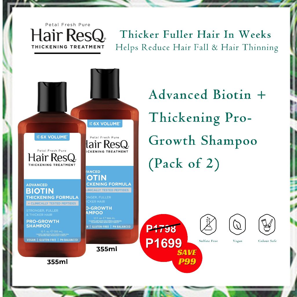 Petal Fresh HairResQ Thickening Shampoo, Advanced Biotin Pro-Growth Formula Pack of 2 (355 ml x 2)