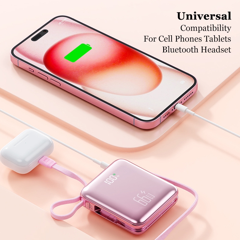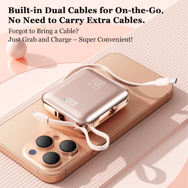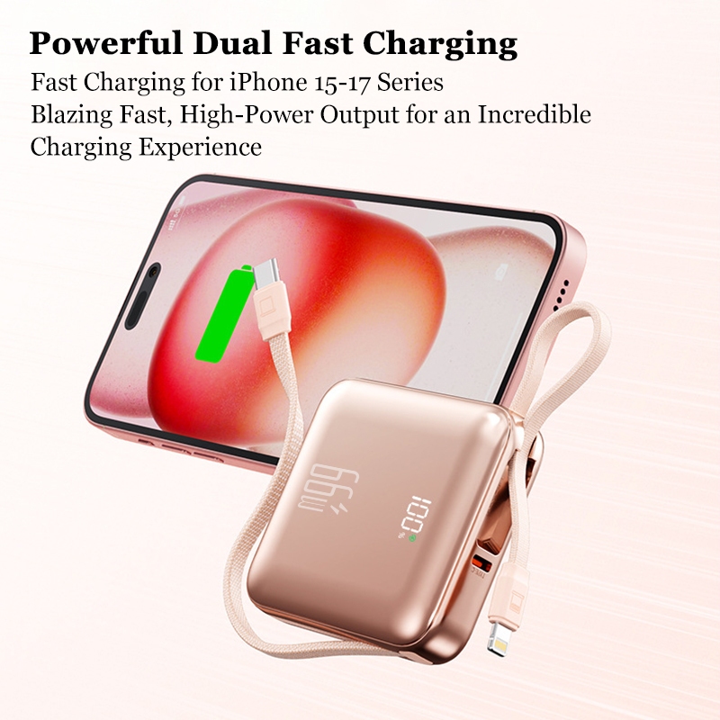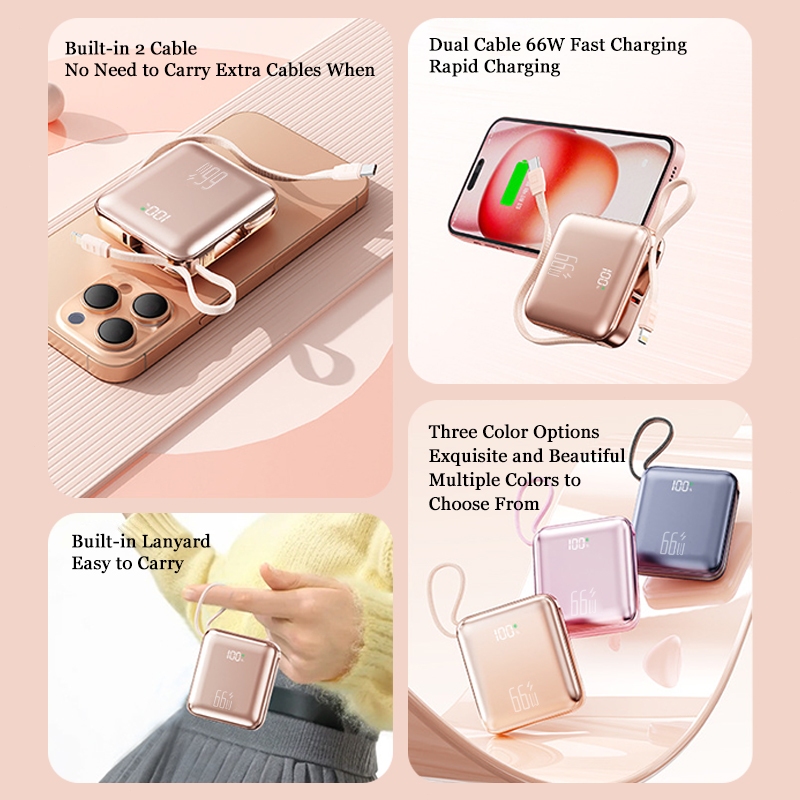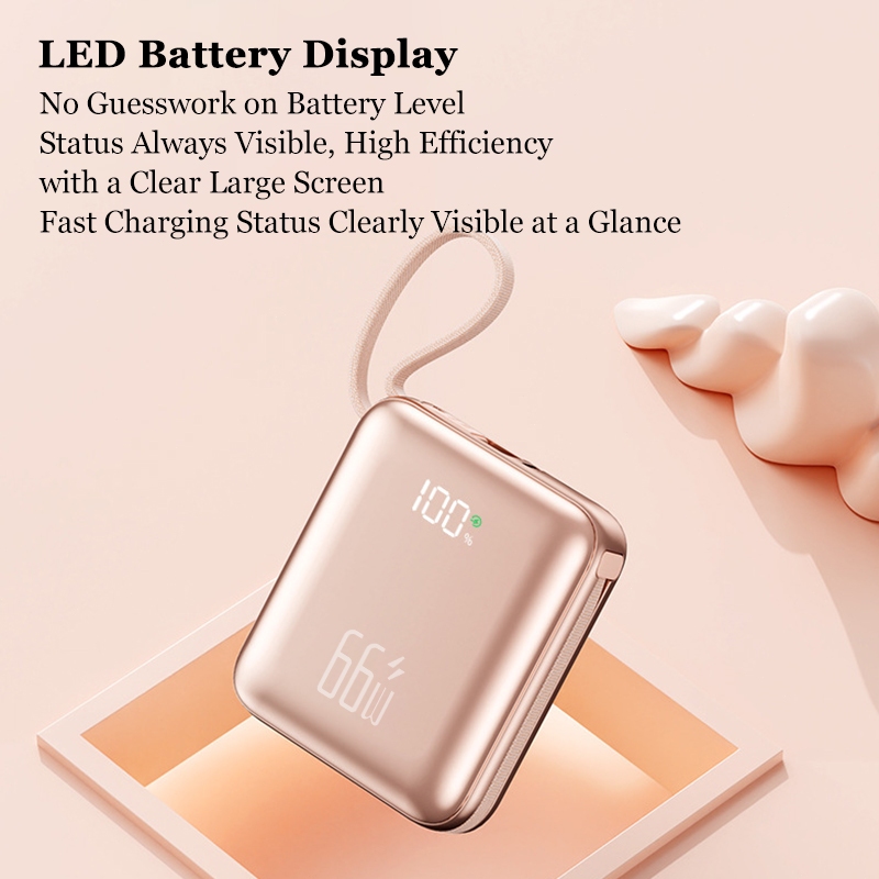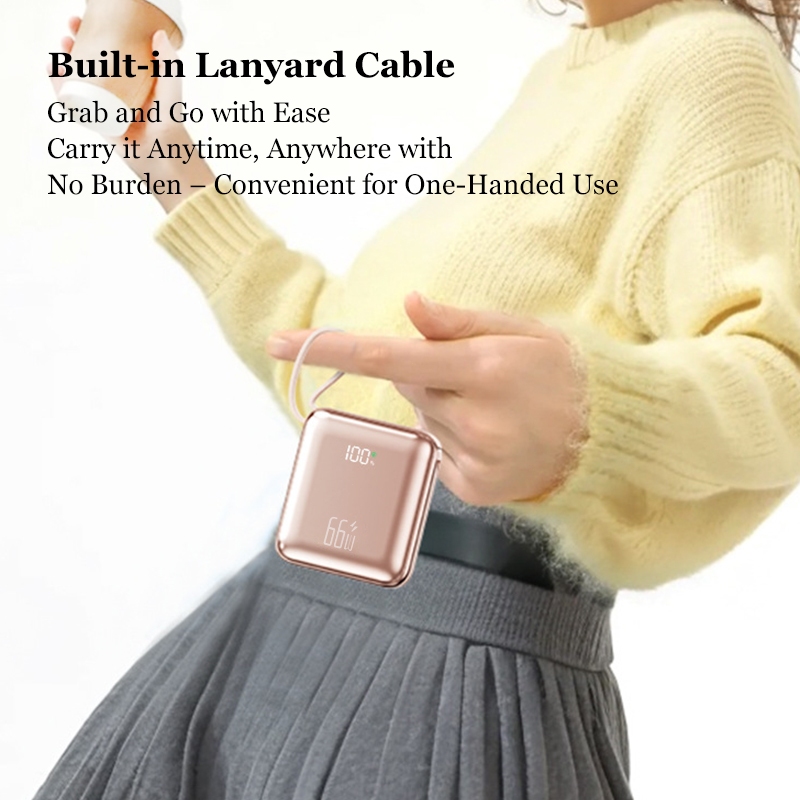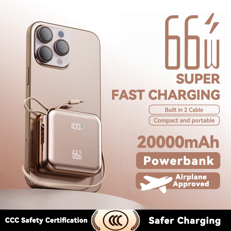 Xiaom Powerbank 20000mAh Built in Cable for Type C iPhone Portable 66W Fast Charging Compact