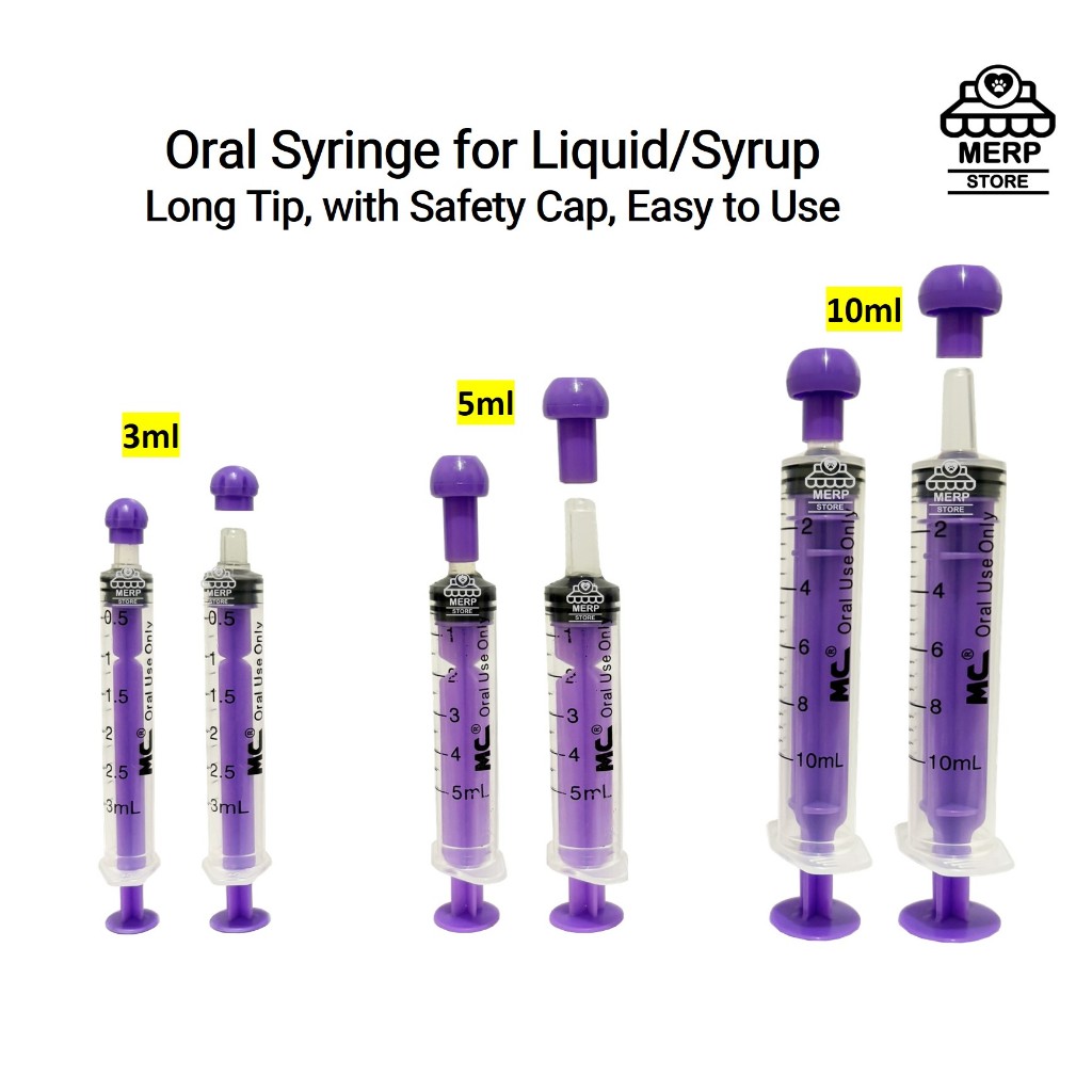 Oral Syringe (PURPLE) Long Tip, with Safety Cap, Easy to Use