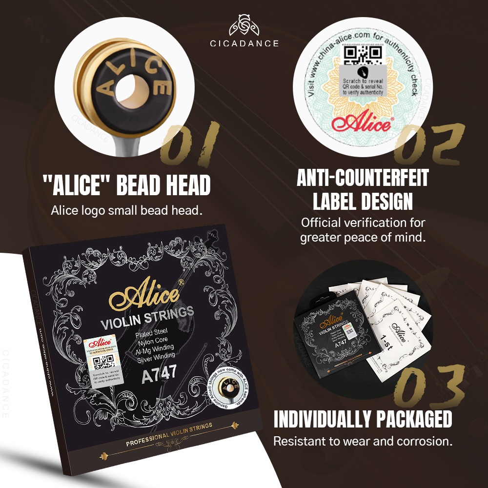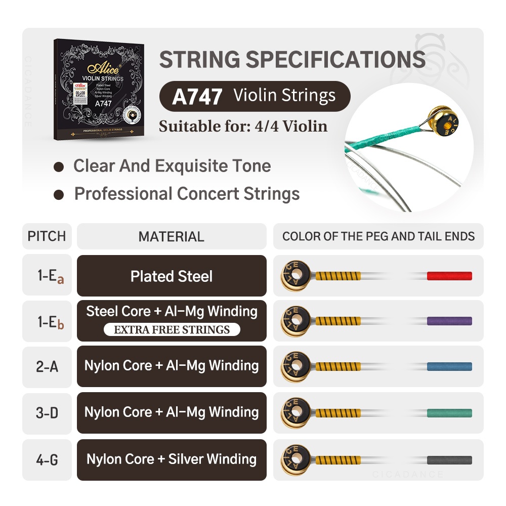 Alice Universal Violin String Set Al-Mg Winding & Silver Winding Professional Concert Strings for Advanced Musician