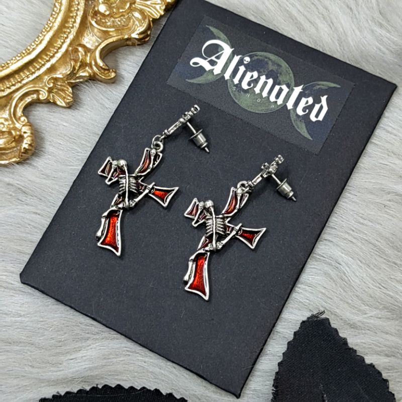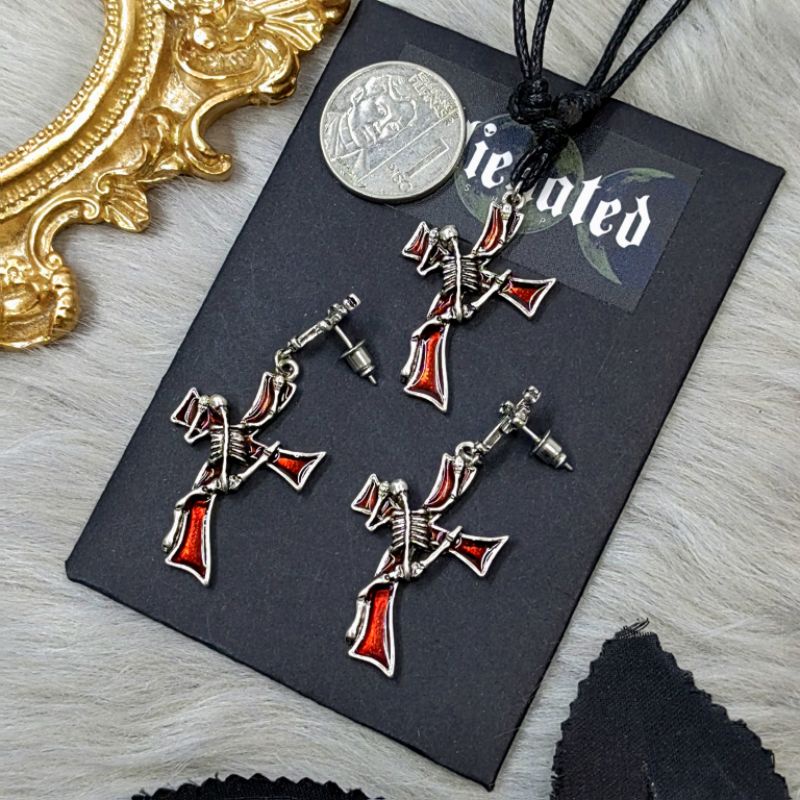 Alienated Shop | Skeleton Re Cross Necklace Earrings Set Gothic Grunge Witch Punk Rock Aesthetic