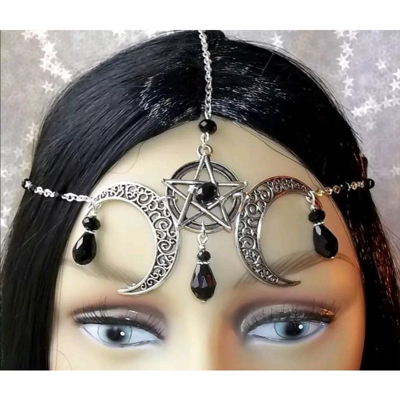 Alienated Shop | Triple Moon Triskele Headpiece Gothic Head Chain