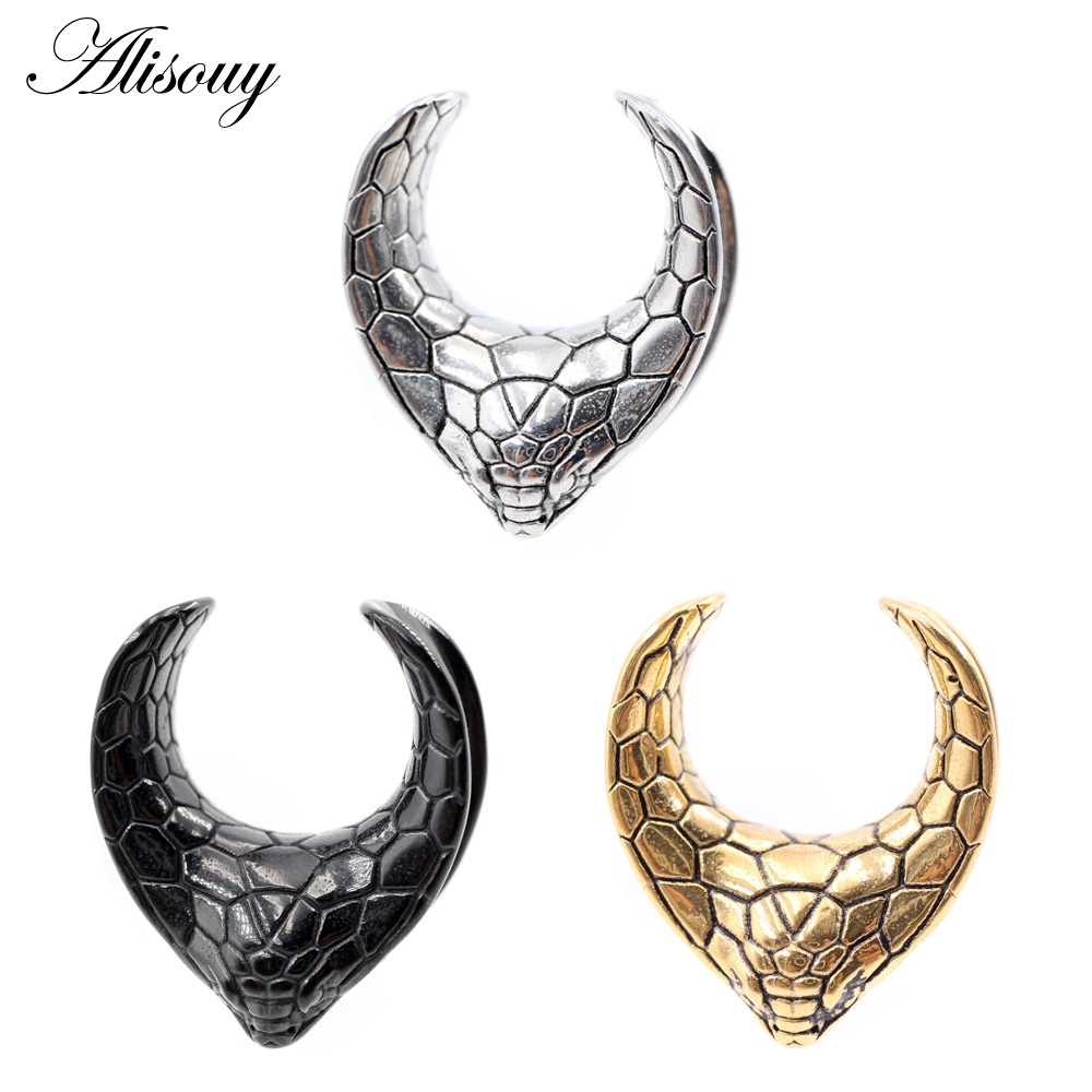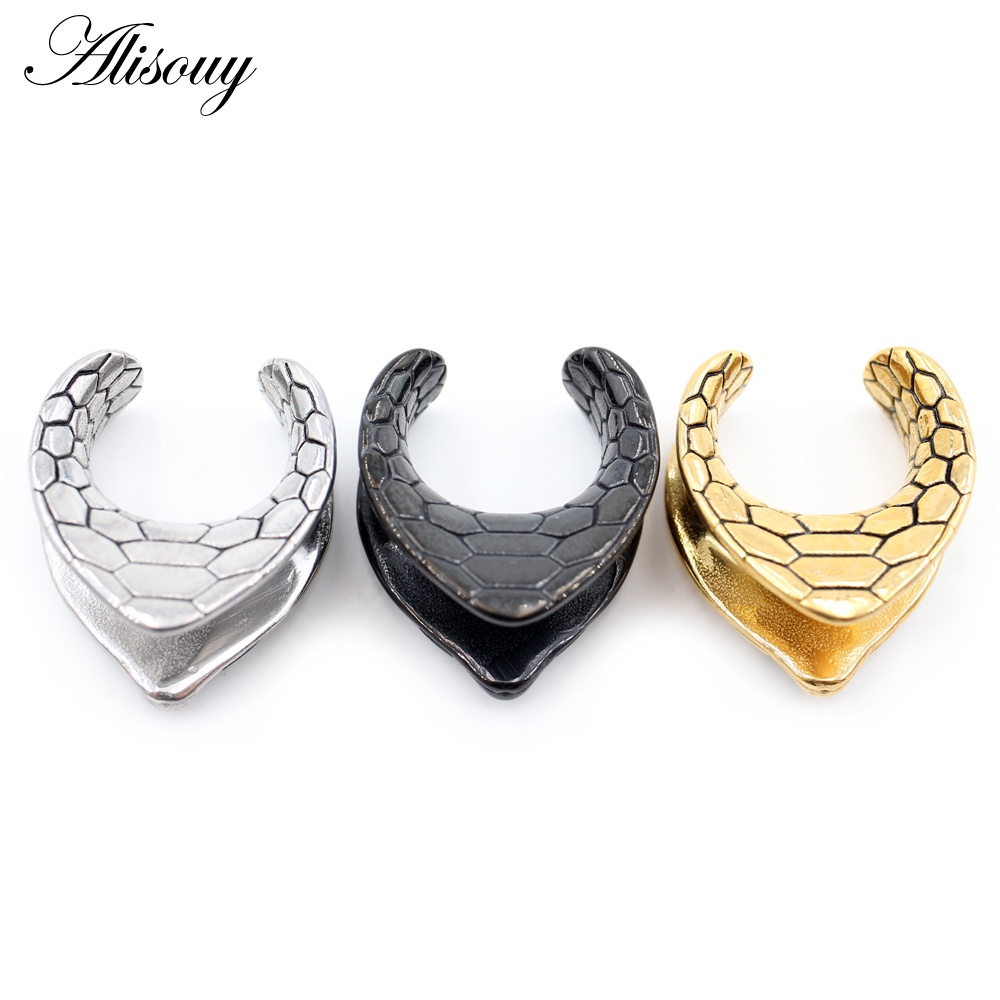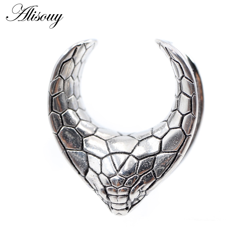 Alisouy 1 Piece Stainless Steel V-shaped Snake Pattern Saddle Ear Tunnel Plug Expander Stretcher Gauge Earring Piercing Body Jewelry