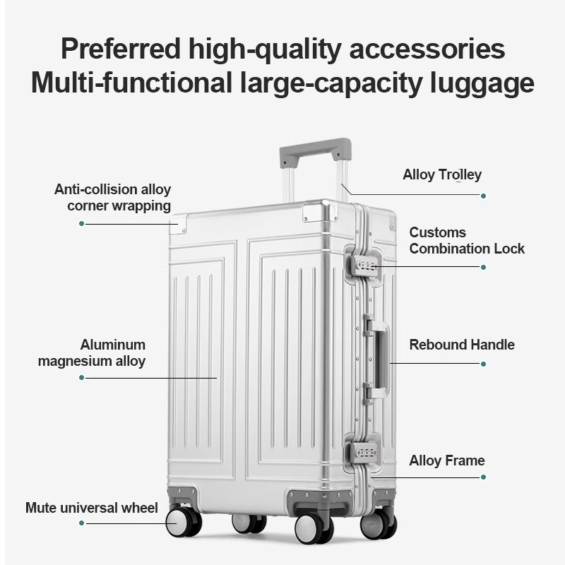 All aluminum magnesium alloy luggage business trolley case universal wheel code case travel case