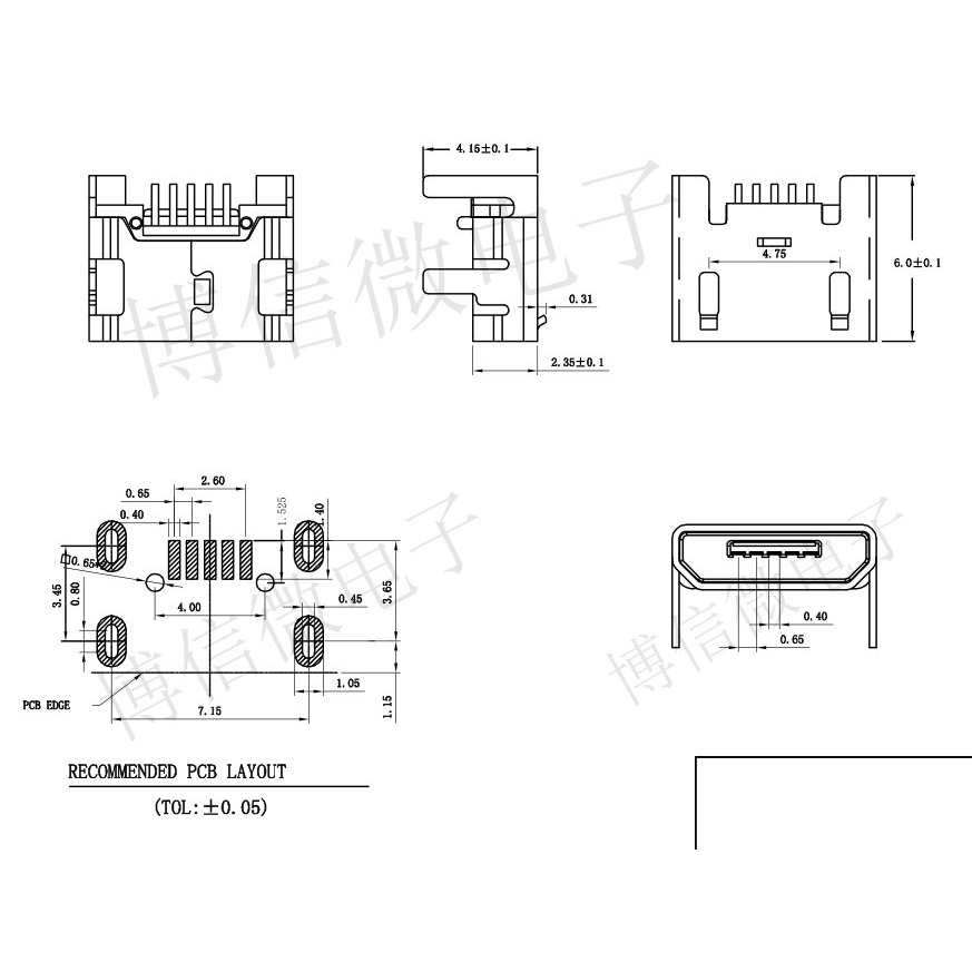 All copper four pin micro USB 5P 7.2 4-pin plug-in board flat mouth rolled edge Mike USB socket