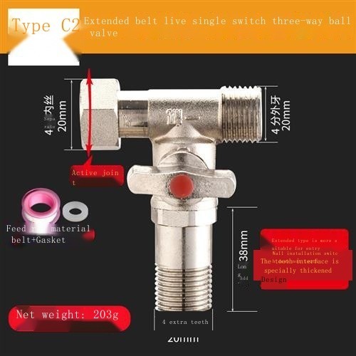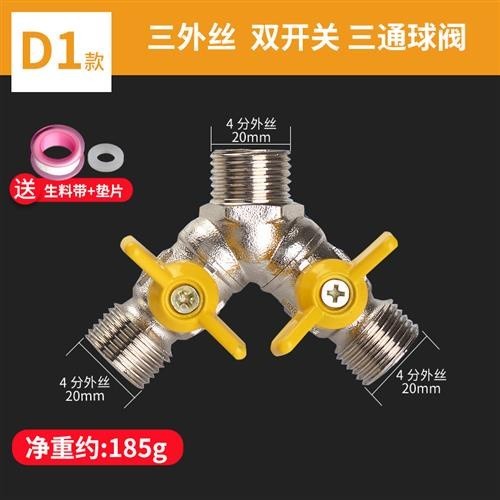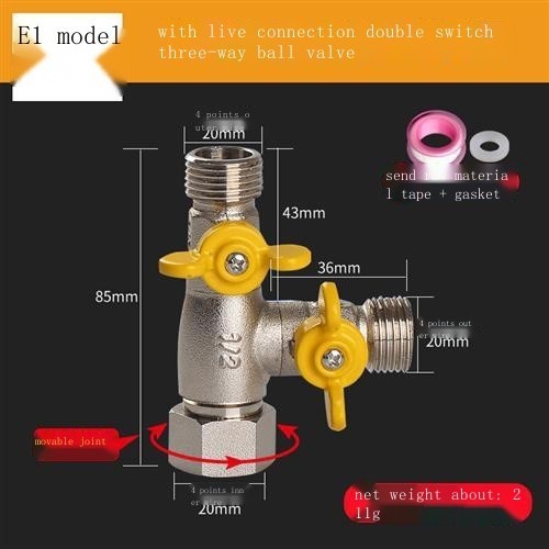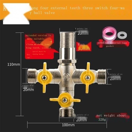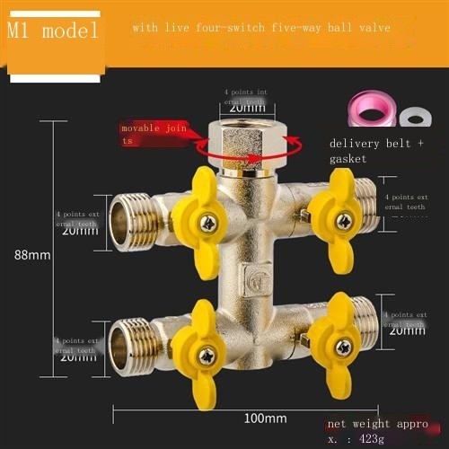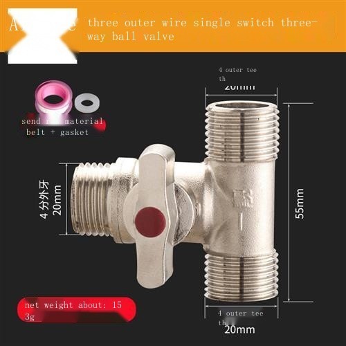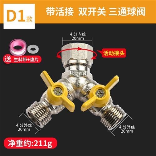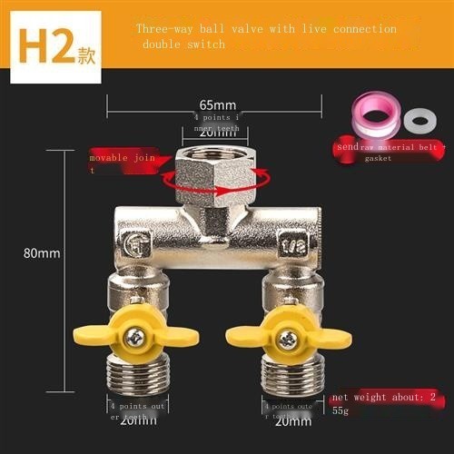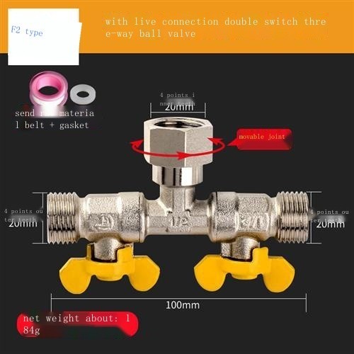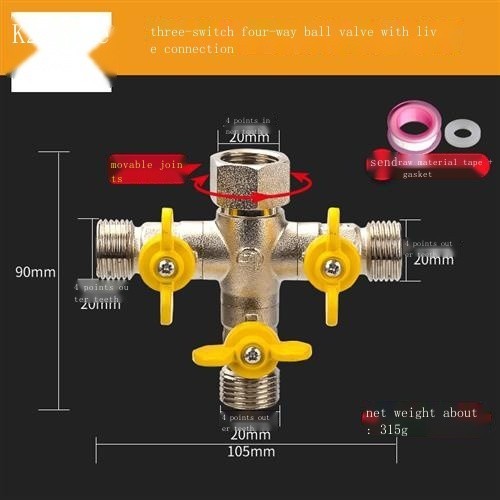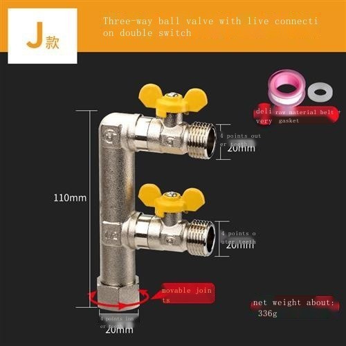 All-copper live connection three-way water divider ball valve one in two out four-way water pipe joi