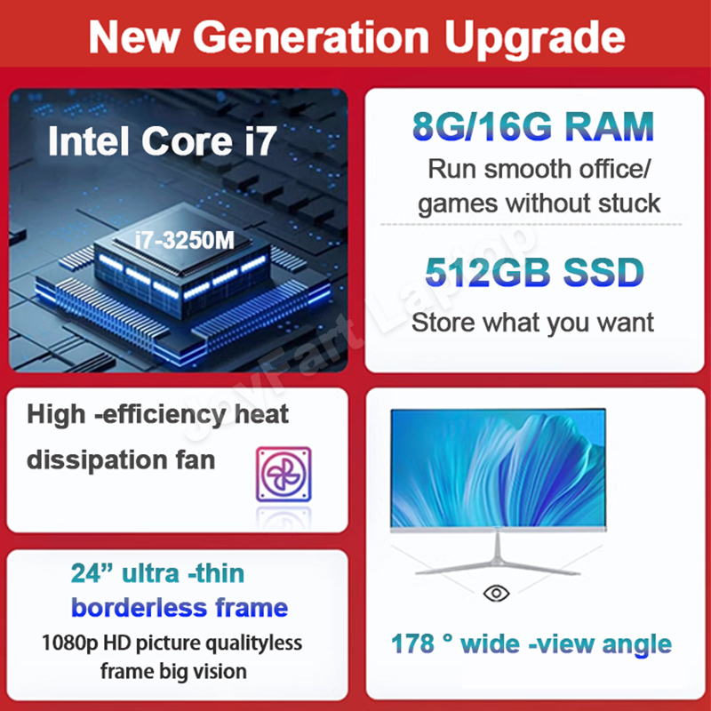 All in One PC Computer Set 22/24 Inch Intel Core i7 16G RAM 512G SSD Gaming PC Desktop Computer