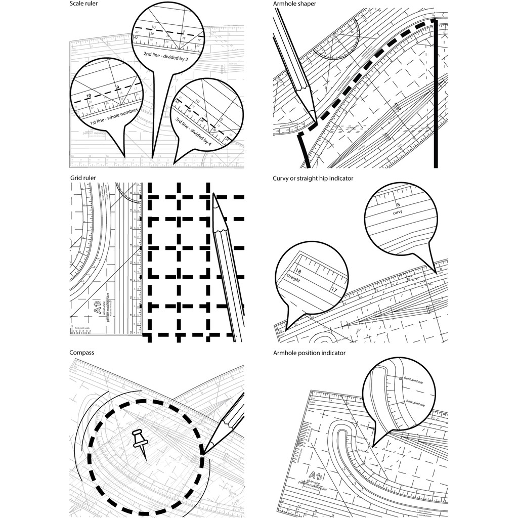 All-in-One Pattern Making Ruler 15-in-One Ruler, A1 Ruler