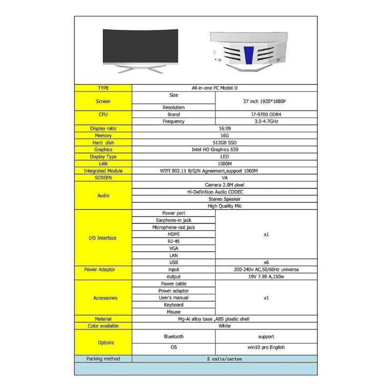 All in one PC Computer set Intel core i7-9700 4k 27-inch Curved Screen Windows 10 Pro