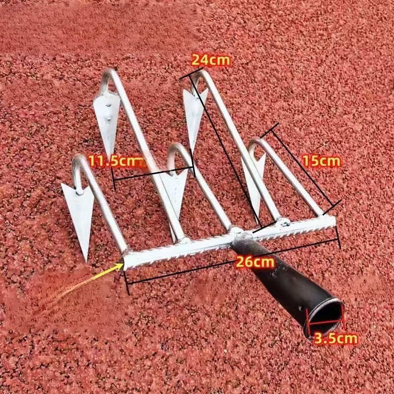 All-steel tooth rake agricultural multi-function five-tooth rake loose soil turning weeding device three-tooth triangle tooth rake