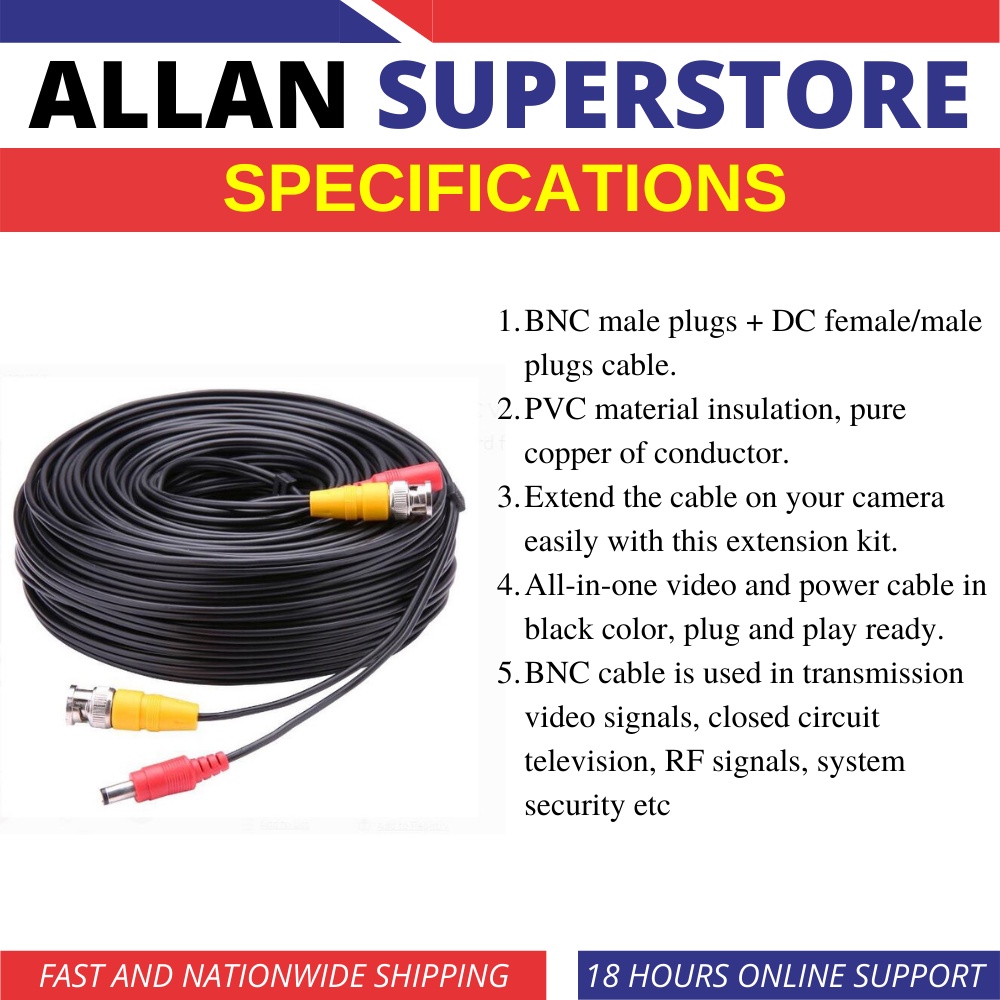 Allan Superstore Premade CCTV Cable | Siamese Cable | Coaxial Cable | 10M | 20M | 30M | 40M | 50M