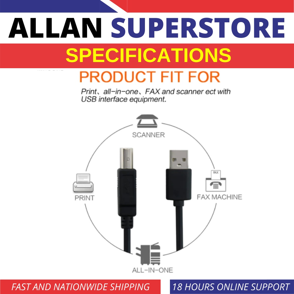 Allan Superstore Printer Cable 1.5m Universal Usb 2.0 A Male To Type B Suitable For Sca