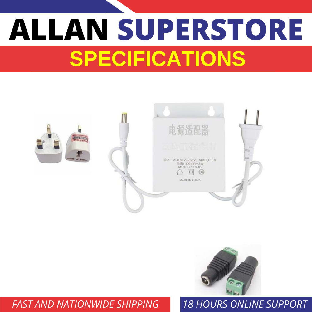 Allan Superstore Rainproof 12v Adapter for CCTV / 12v2a Outdoor Adapter / CCTV Adapter