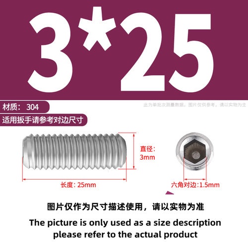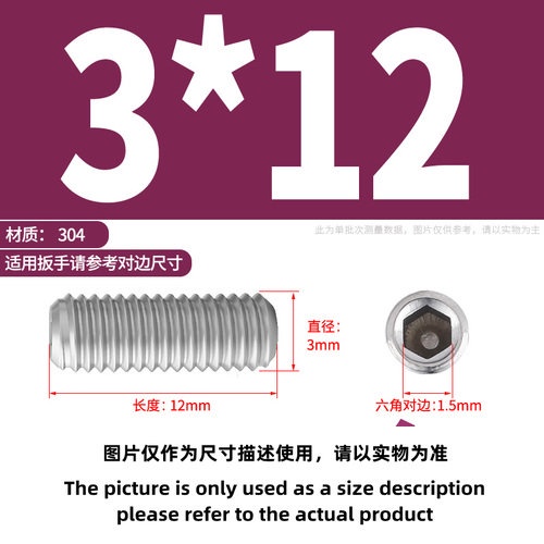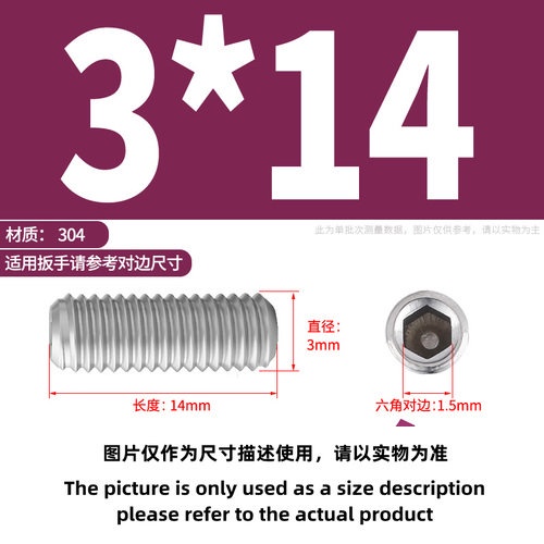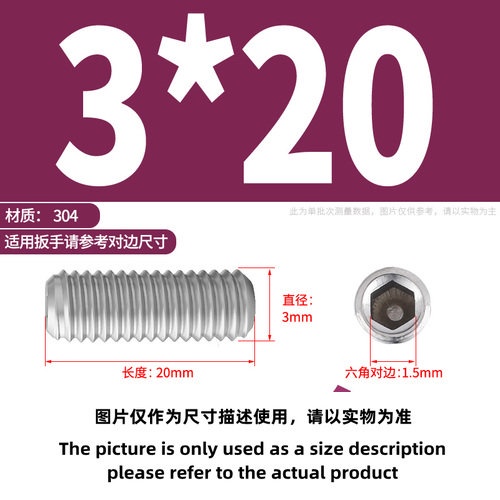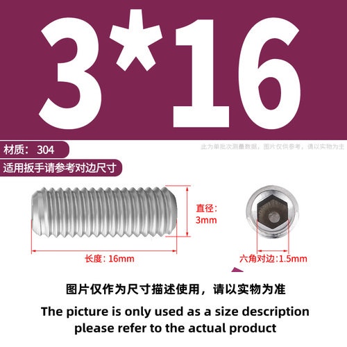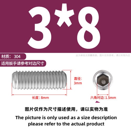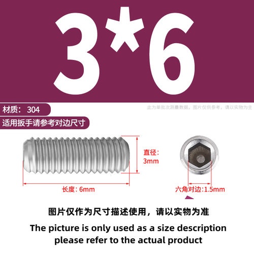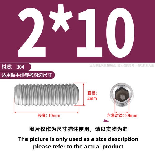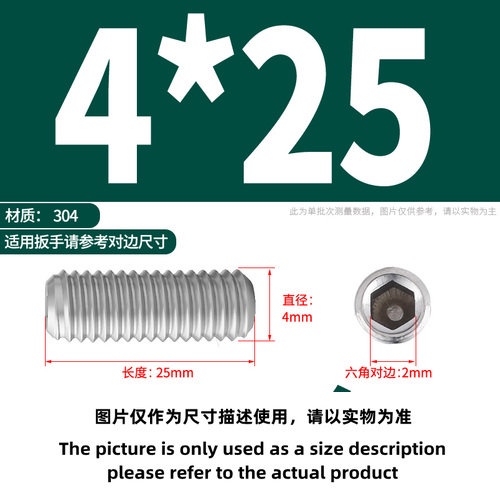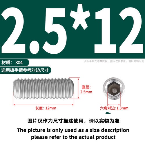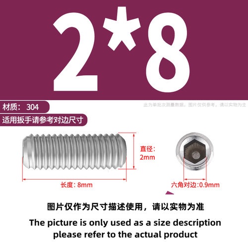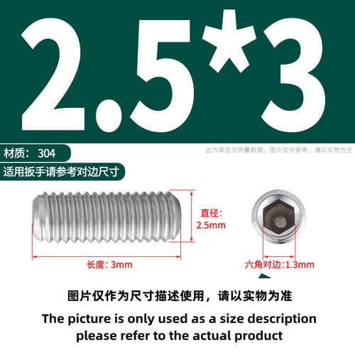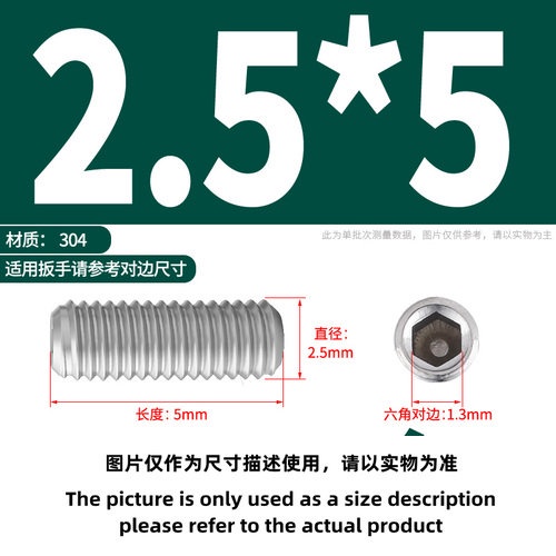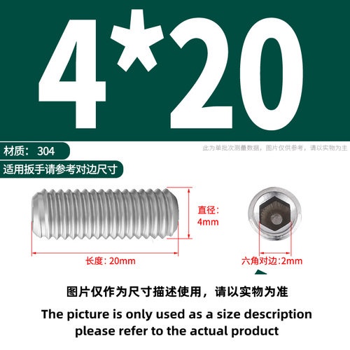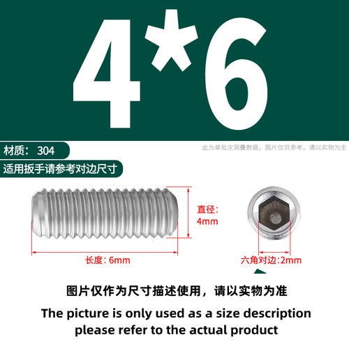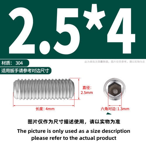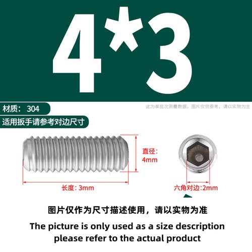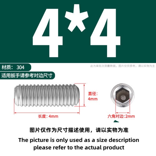 Allen Cup Point Set Screw M2 M3 M4 304 Stainless steel Hex Hexagon Socket Set screw