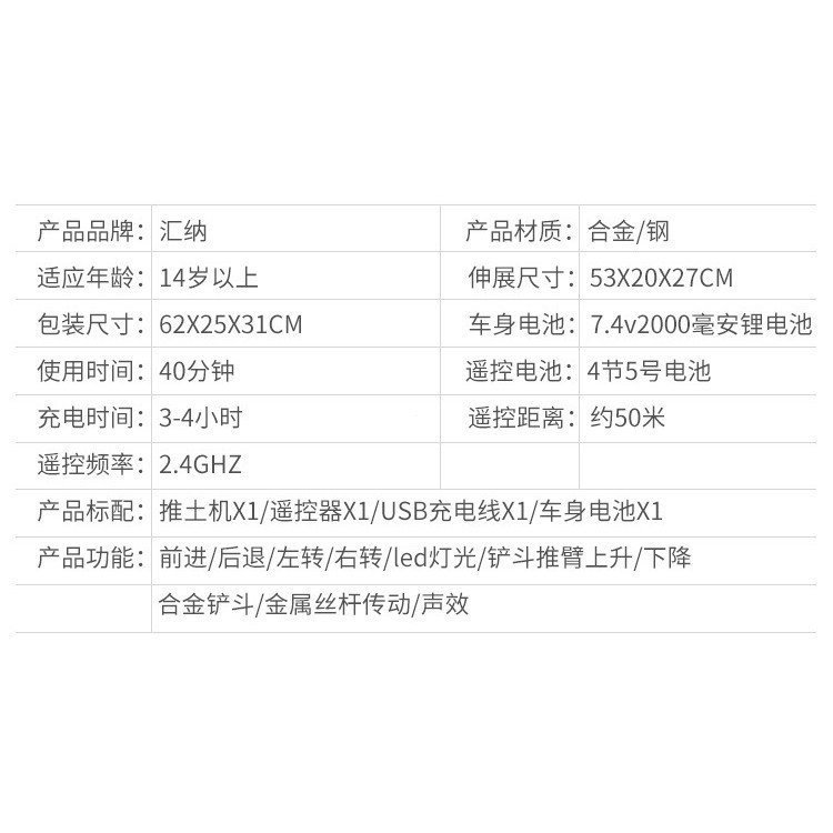 Alloy Huina Toys 1583 RC Bulldozer Truck 1/14 Huina 583 Metal Remote Control Loader with Front Loader Car Toys Large Construction Vehicle Model BZBZ