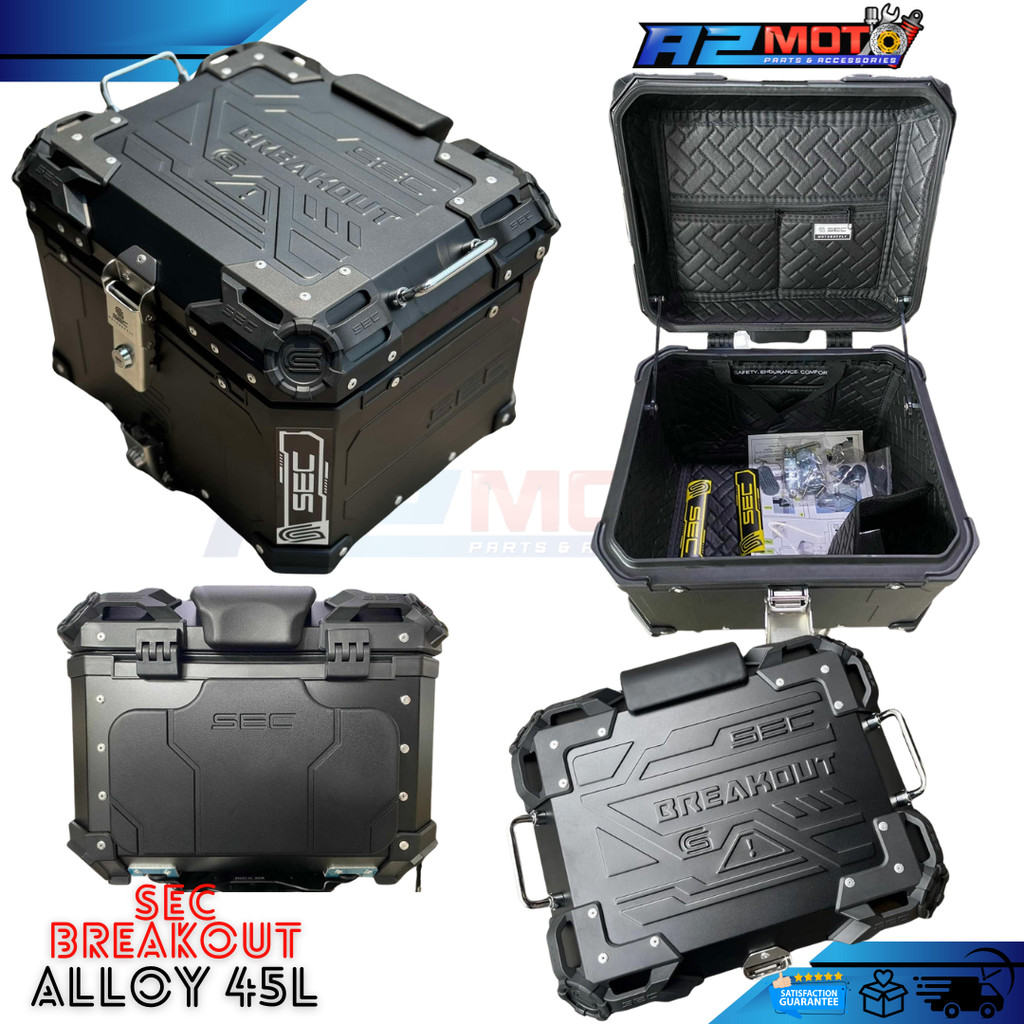 Alloy Top BoX SEC BreakOut Safari ADventure 45L w Back Rest Base Plate