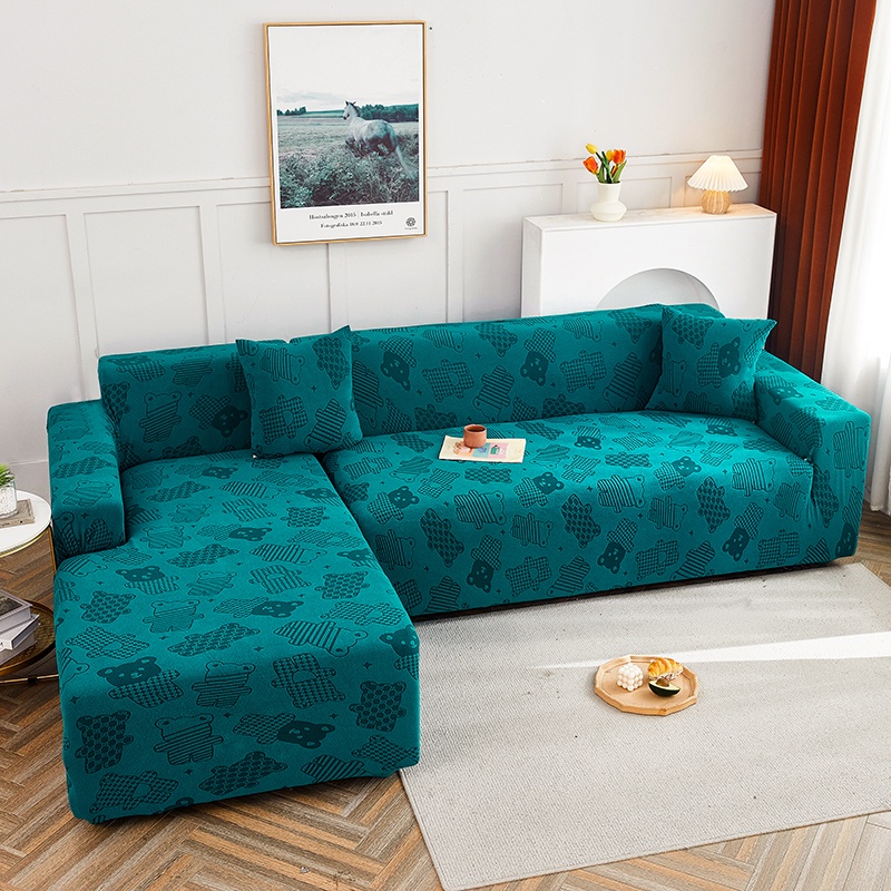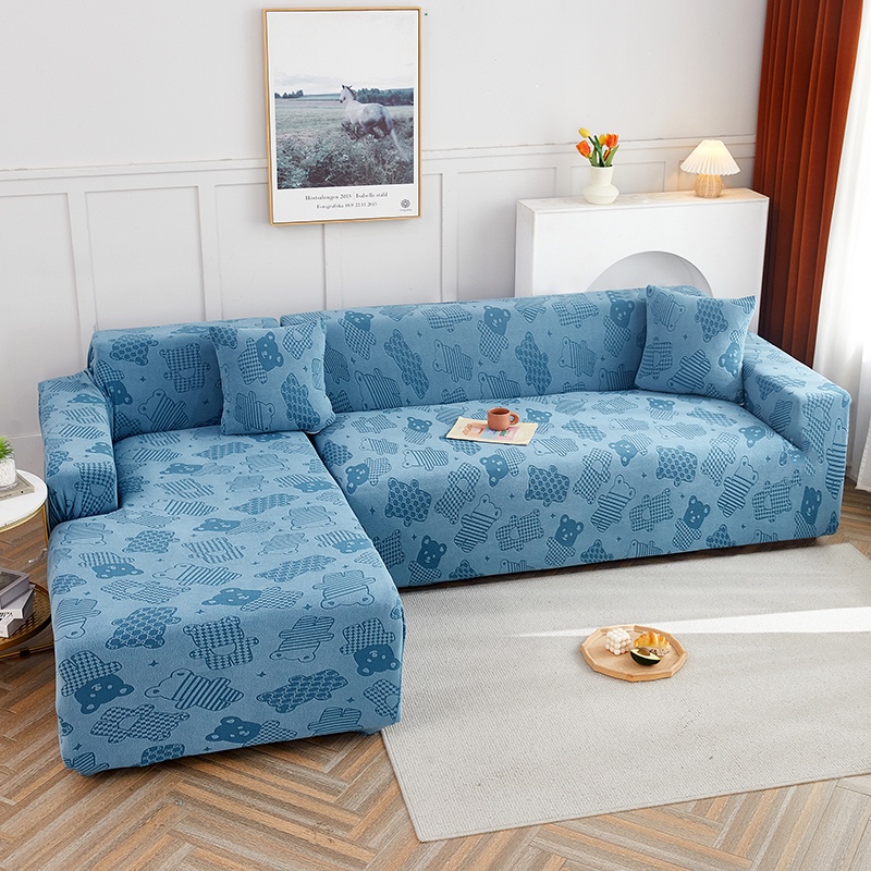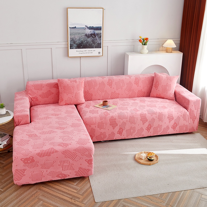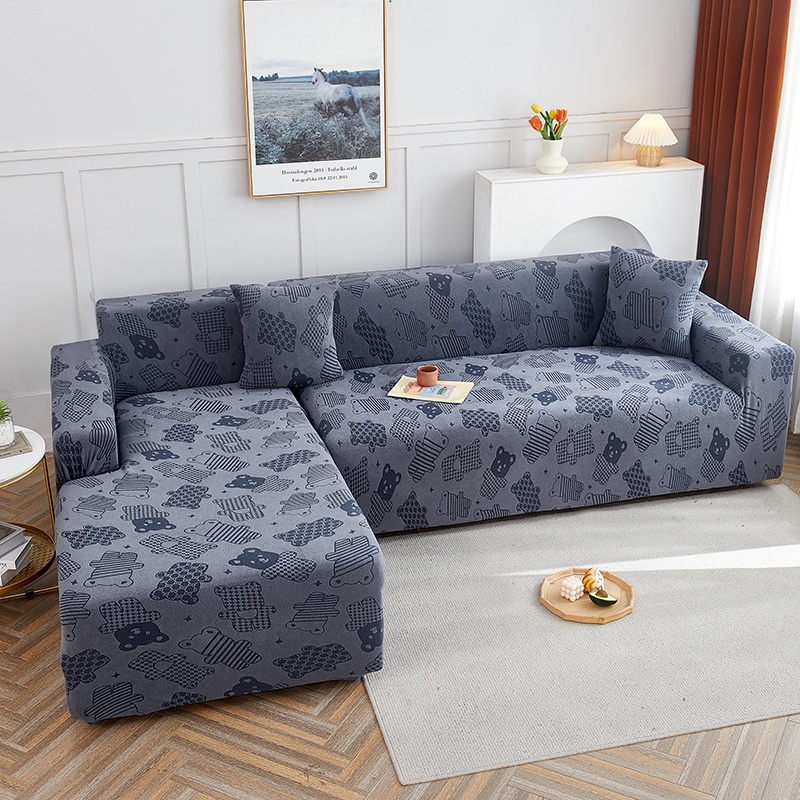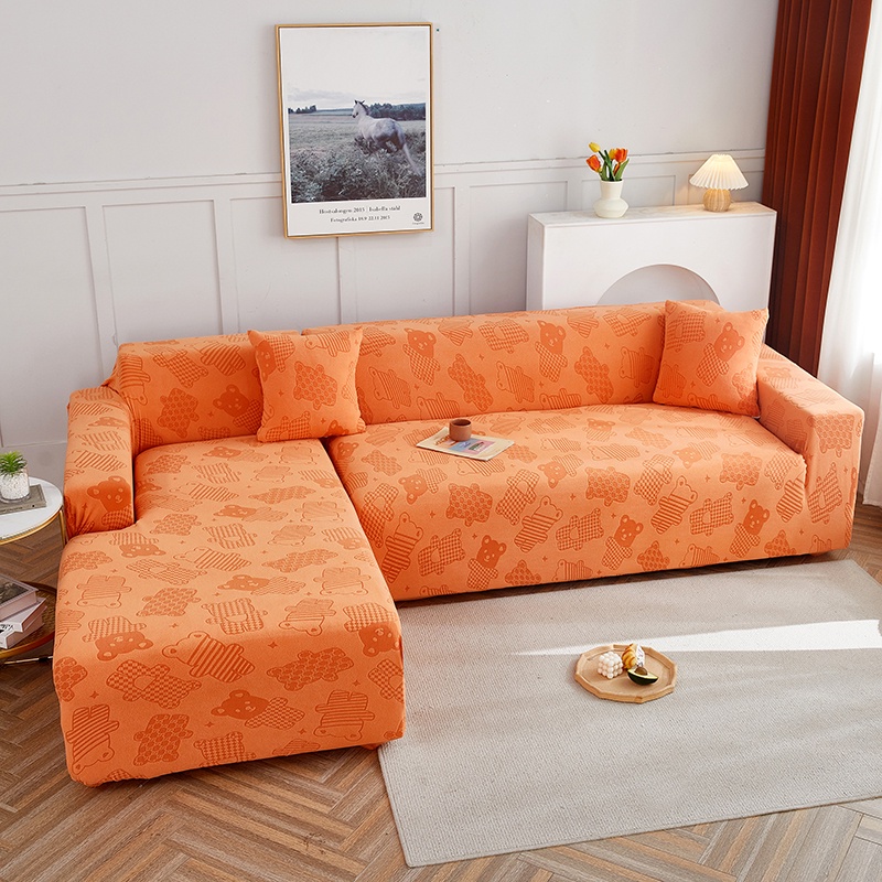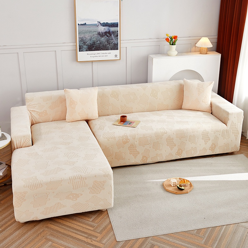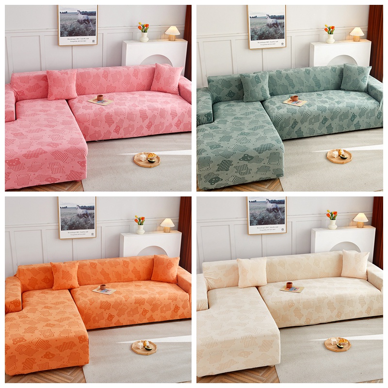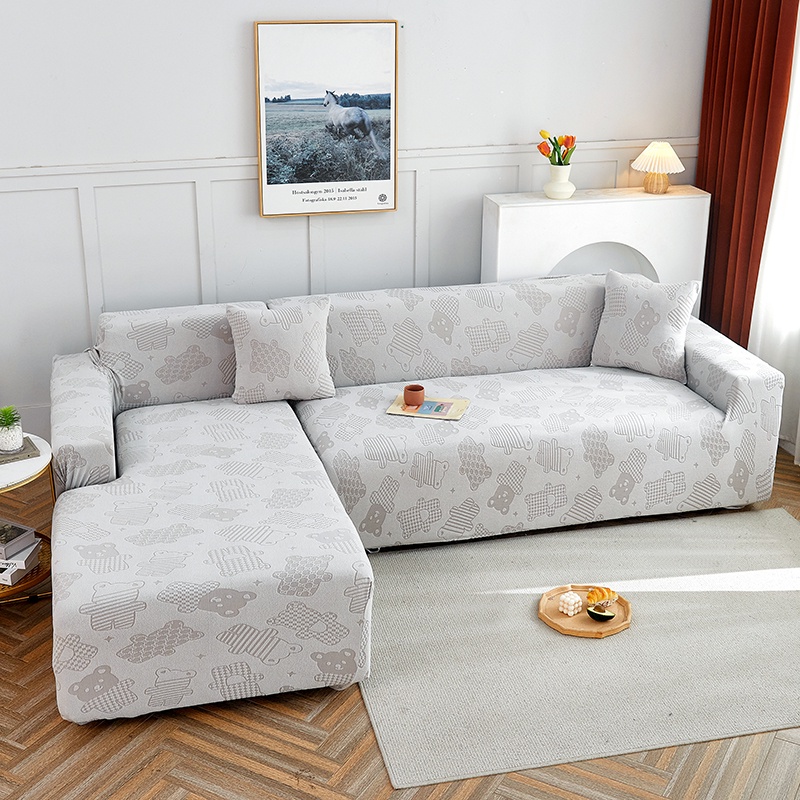 Allswonderland 1/2/3/4 Seater Elastic Thicken Plain Sofa Cover Cute Bear Design Stretchable Couch Covers l/L Shaped Slipcover Home Decor