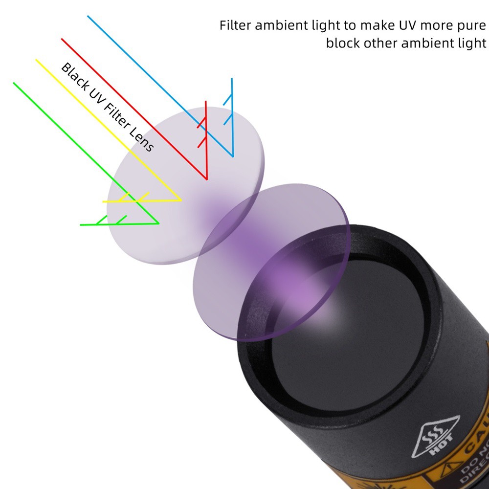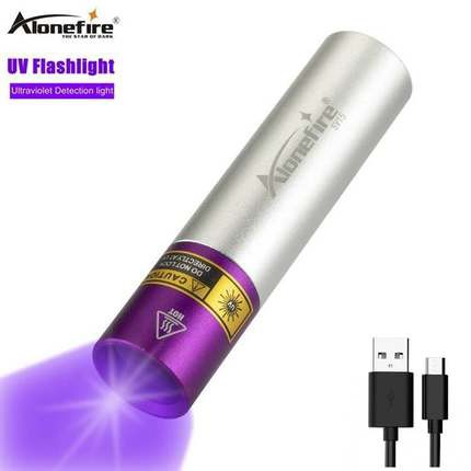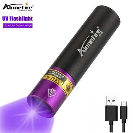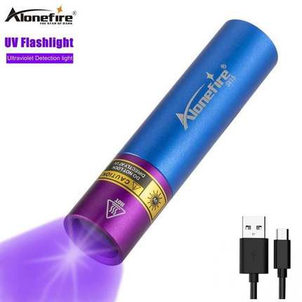 Alonefire SV15 Mini 365nm UV Flashlight USB Rechargeable Black Light Portable Pet Urine Money Detector LED Torch
