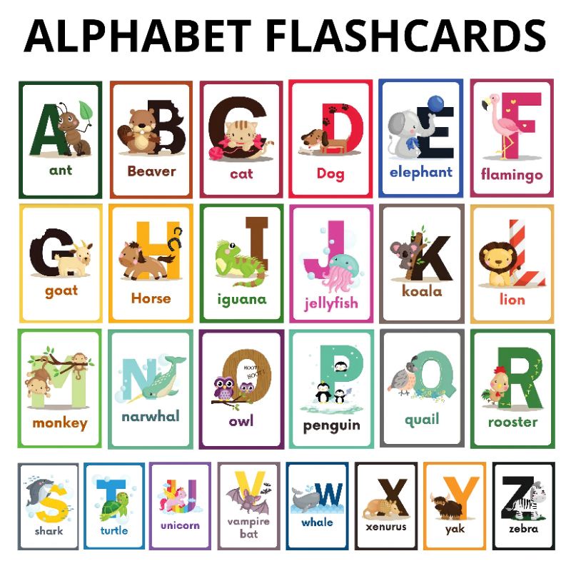 Alphabet Laminated Flashcards, Educational Flashcards for kids