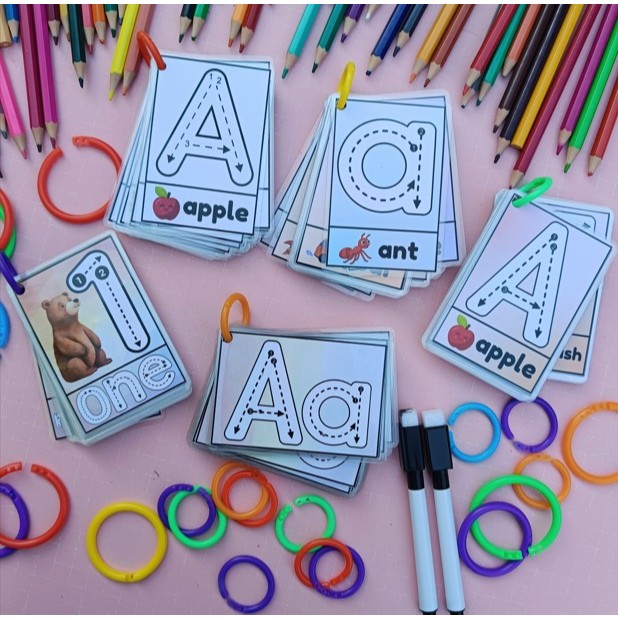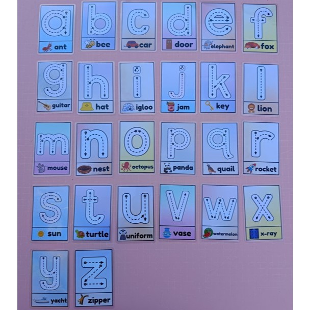 Alphabet Lower Case - Laminated Tracing Flash Cards - 2.50x3.75 inches - free 1 white board marker