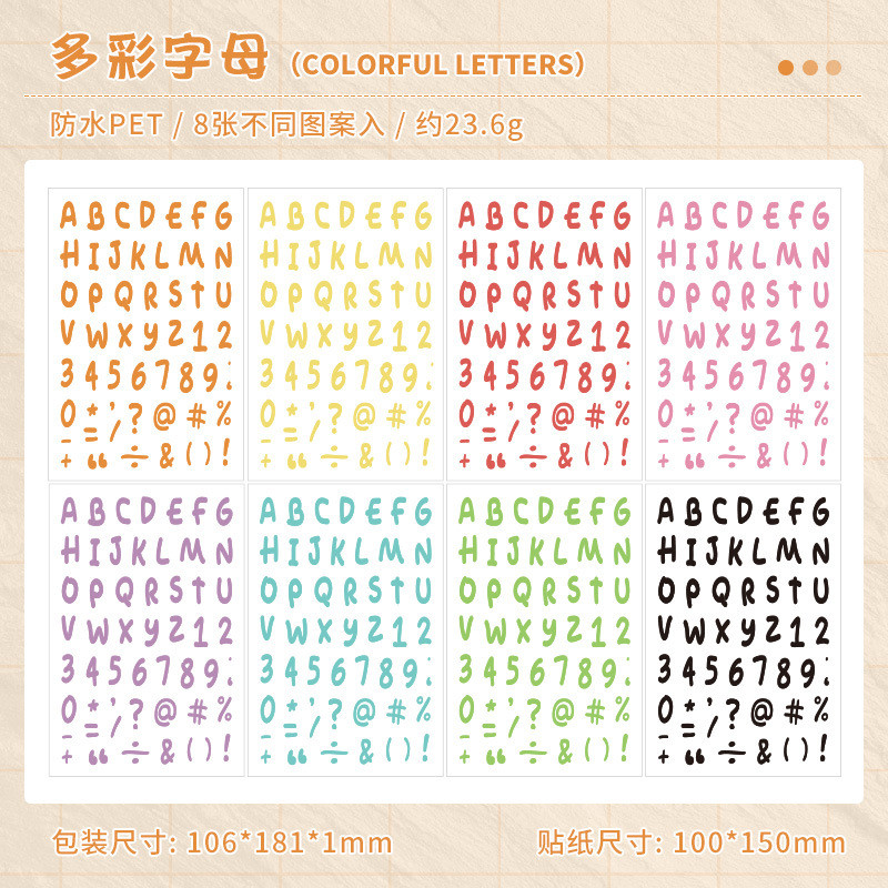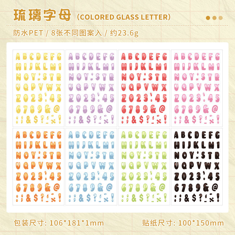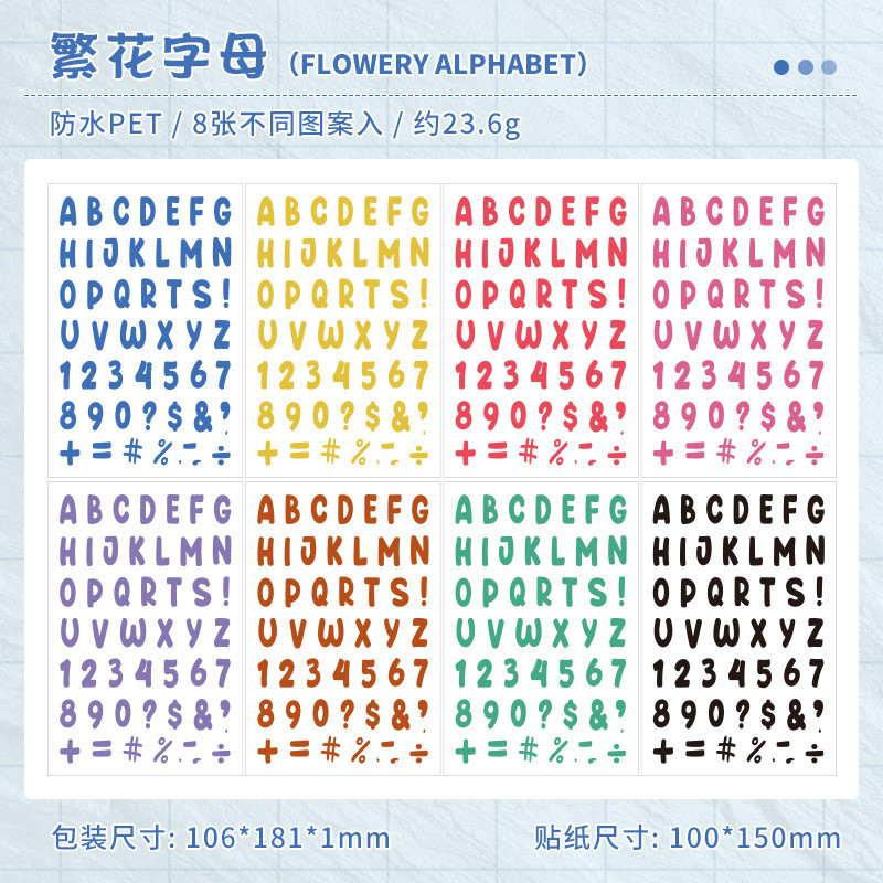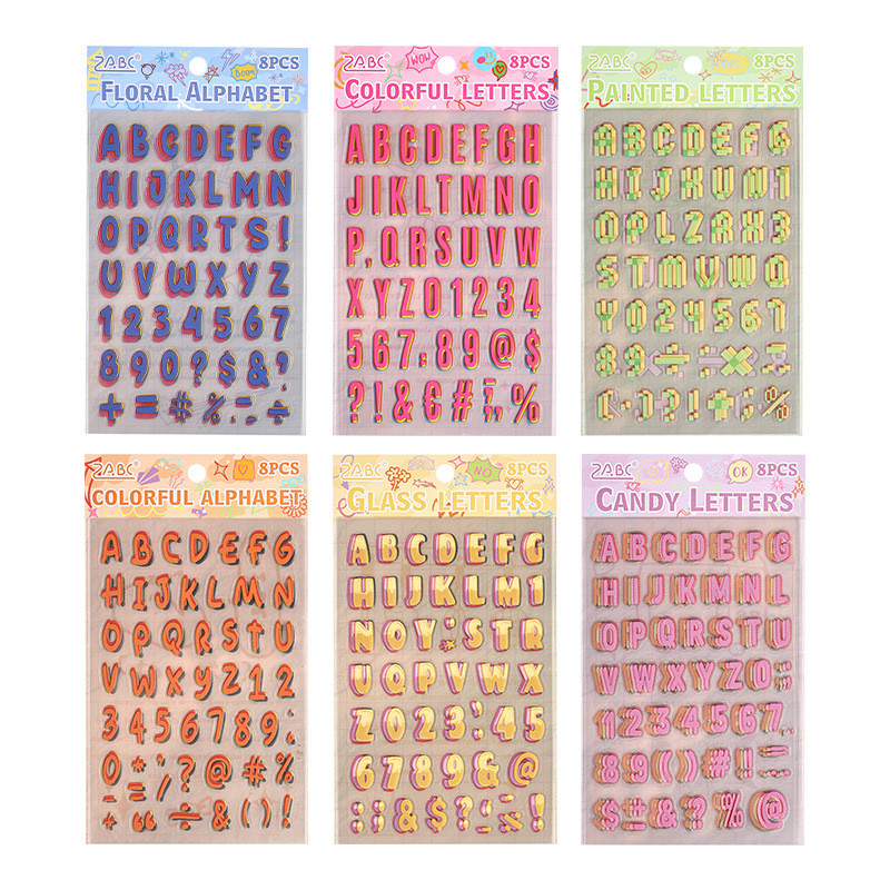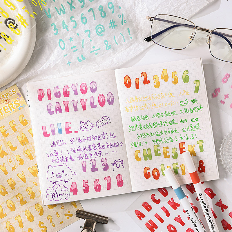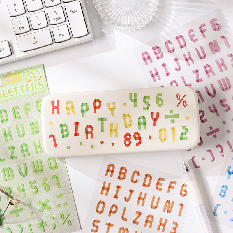 Alphabet Stickers 8 Sheets Alphabet Stickers Self-Adhesive Number Alphabet PET Waterproof Stickers Labels DIY Crafts Art Making Decals for Sign Notebook Classroom Decor Door