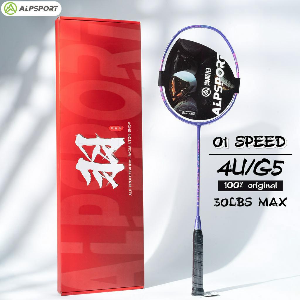Alpsport 01 Speed Professional Badminton Racket 4u G5 Max 30 Lbs 100% Original Design Raketa Ng Purple White Single Bulutangkis Black Tournament Training Outdoor Equipment