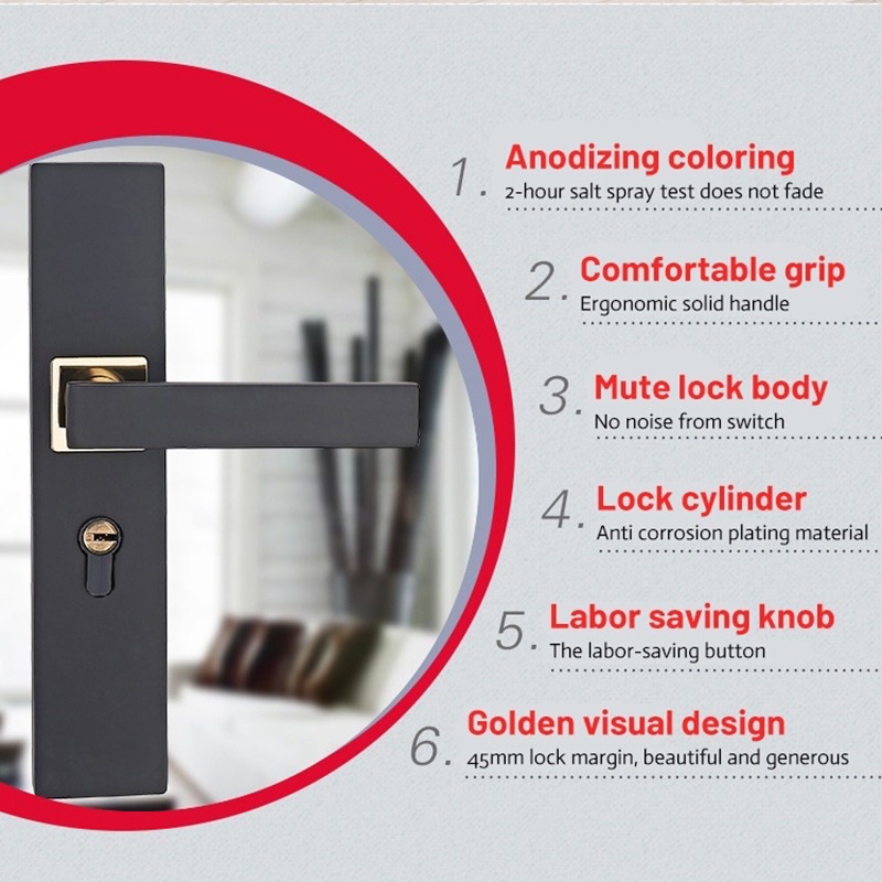 Aluminium Alloy Mute Door Locked Interior Door Handle Locks Set Lock Doorknob For Main Door