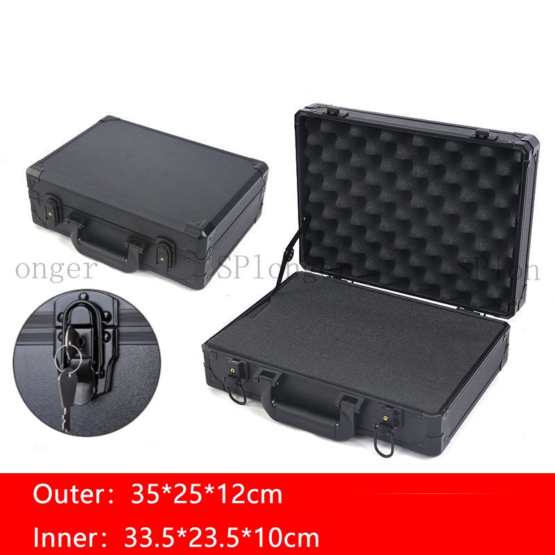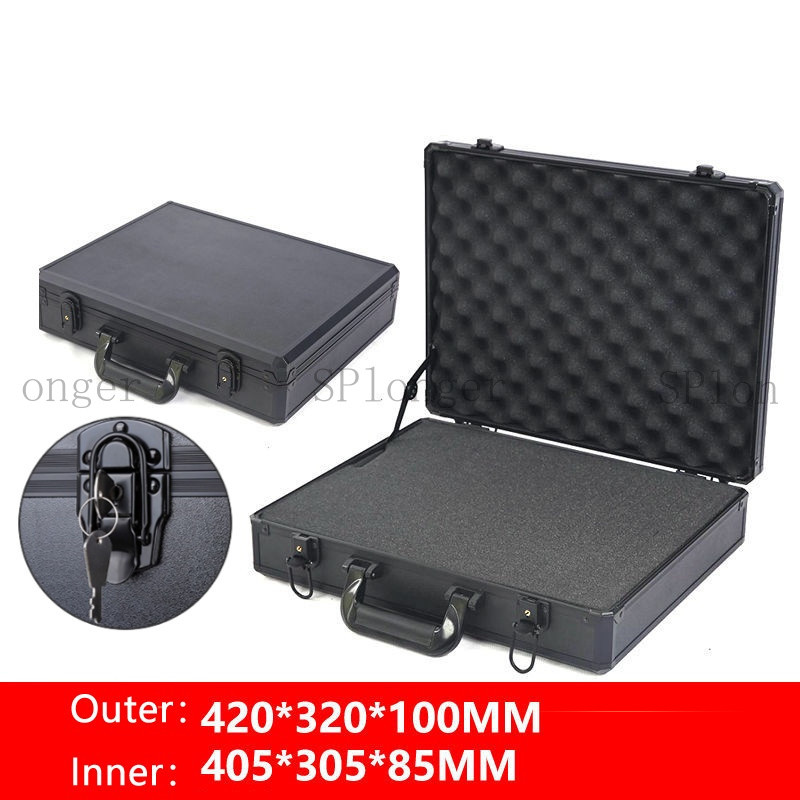 Aluminum Alloy Black Tool Box Safety Equipment Instrument Toolbox Impact Resistant Case Lock Storage