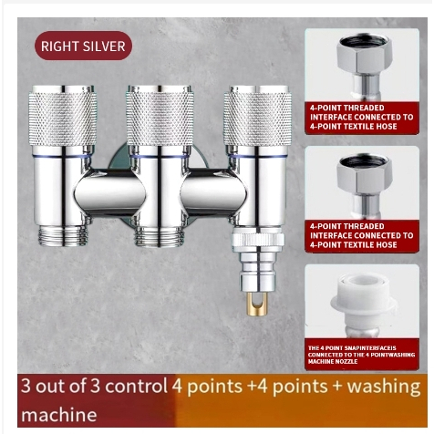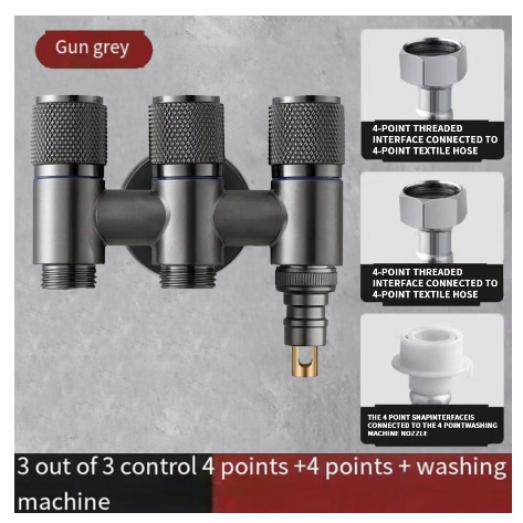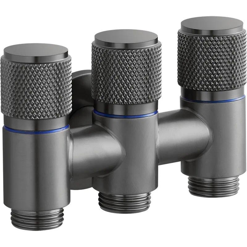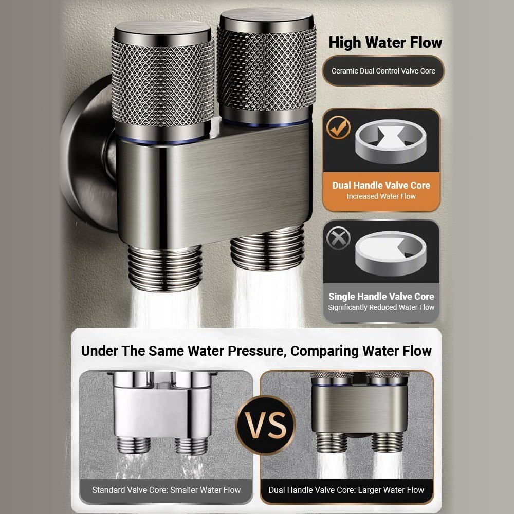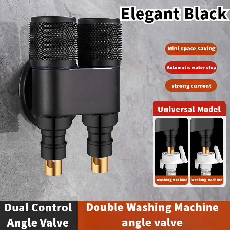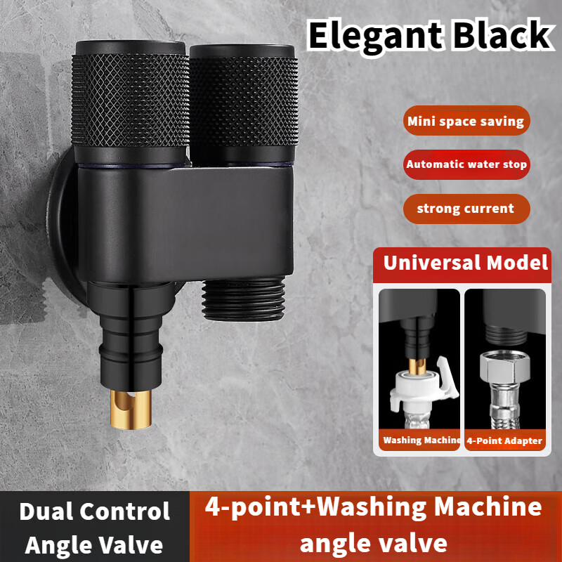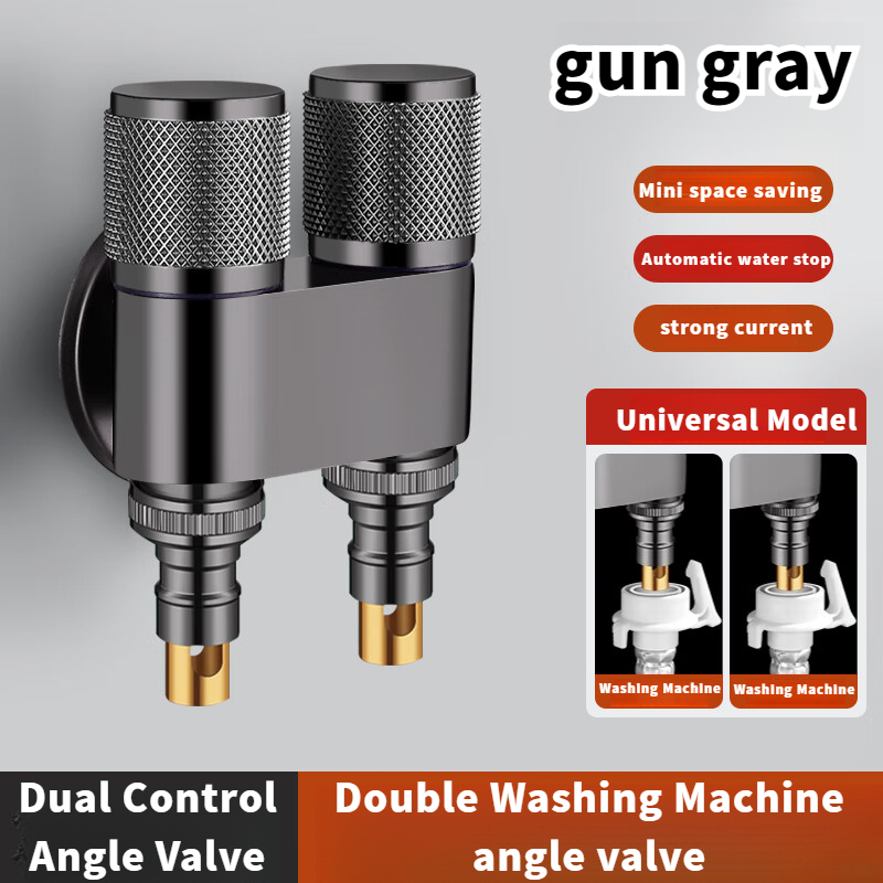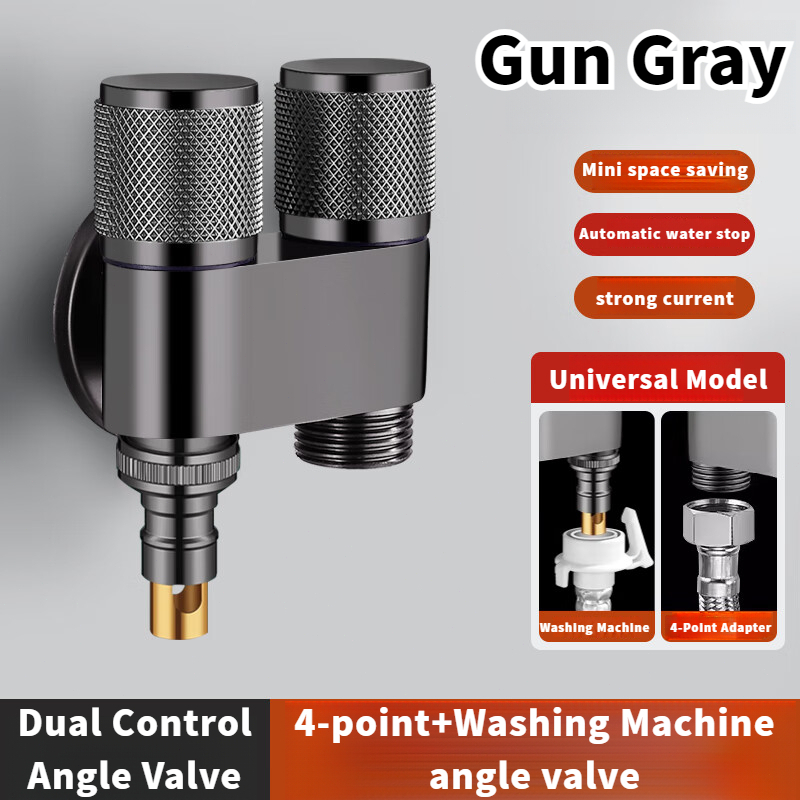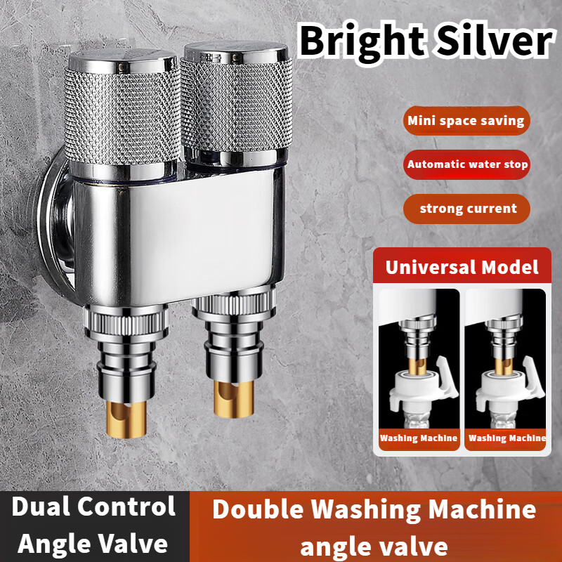 Aluminum Alloy Double Head Water Tap 2 Way One-in Two-out Angle Valve Bathroom Toilet Washing Machine Faucet Dual-control Anti-rust Automatic Water Diverting Valve