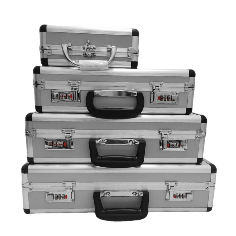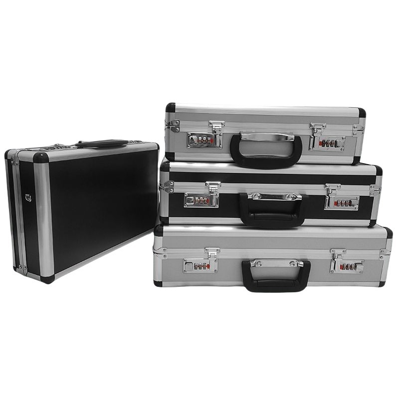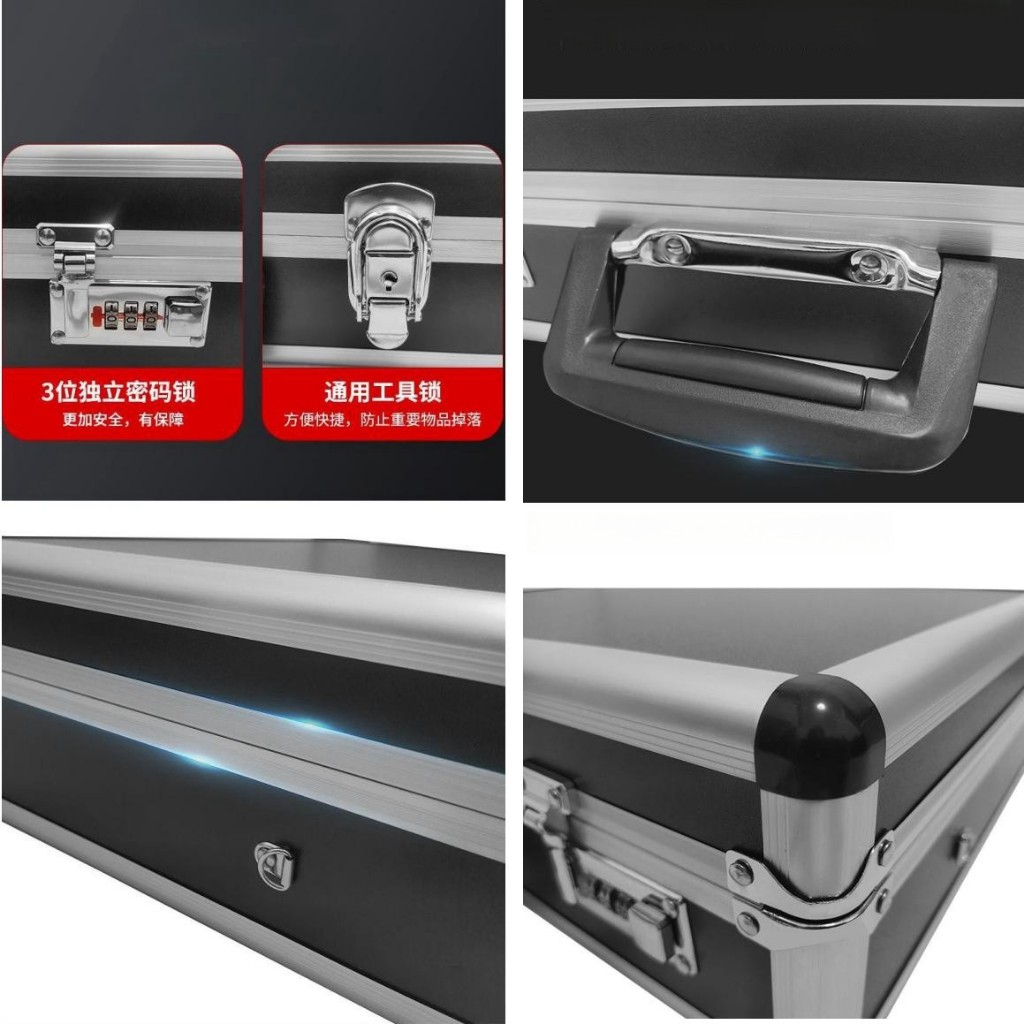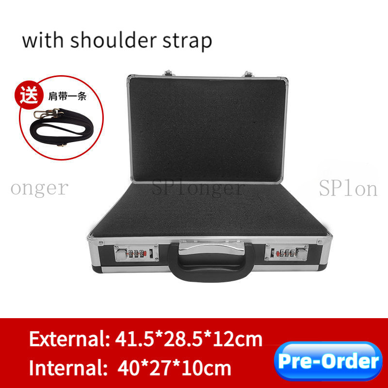 Aluminum Alloy Password Toolbox with Shoulder Strap Equipment Storage Box File Case Key Lock Sponge