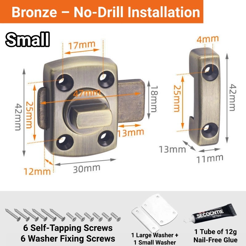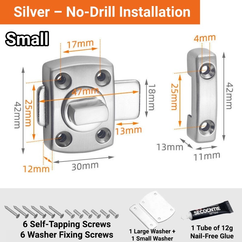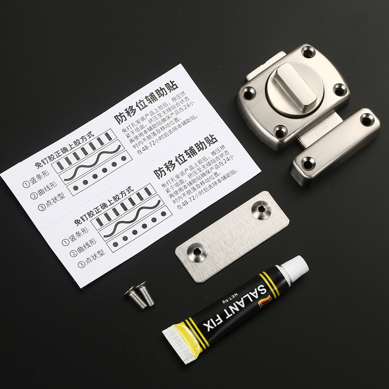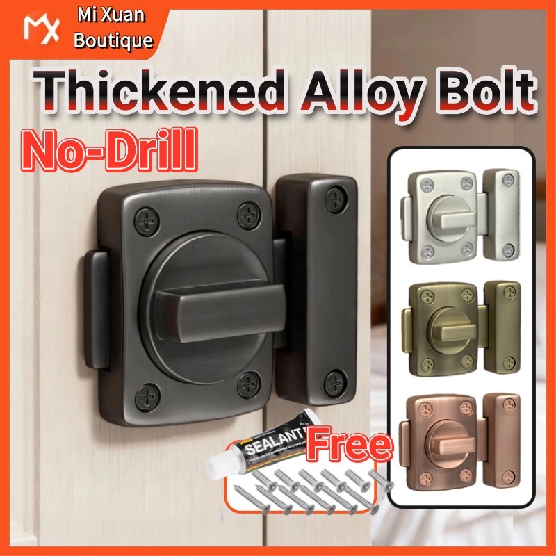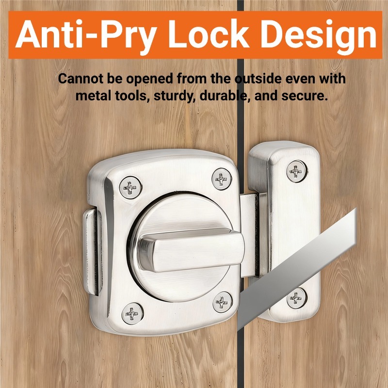 Aluminum Alloy Sliding Door Latch Door Bolt Lock Door Lock Inside No Drill Door Latch Lock Punch-Free Rotating Security Latch, Waterproof Rustproof Indoor Outdoor Anti-Theft Lock for Bedroom Bathroom Cabinet Doors