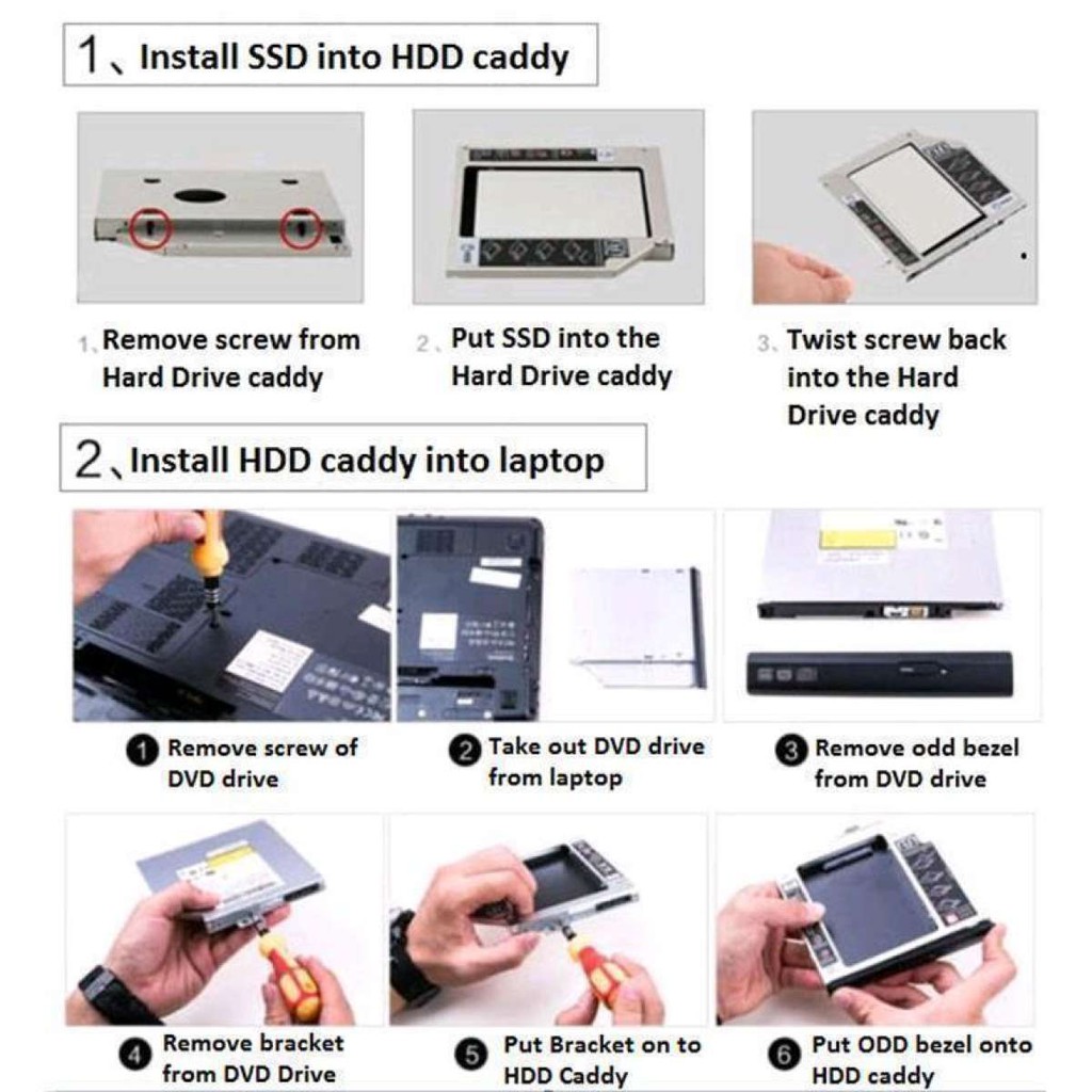 Aluminum Second Hdd Caddy 9.5mm Sata 2.5 Ssd Hard Disk Bracket Notebook Cd-rom