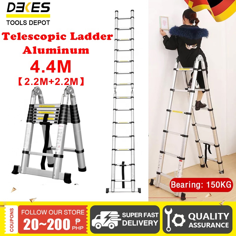 Aluminum Telescopic Ladder Double Sided 4.4 M / (15steps) A-Type Telescopic Aluminum Ladder