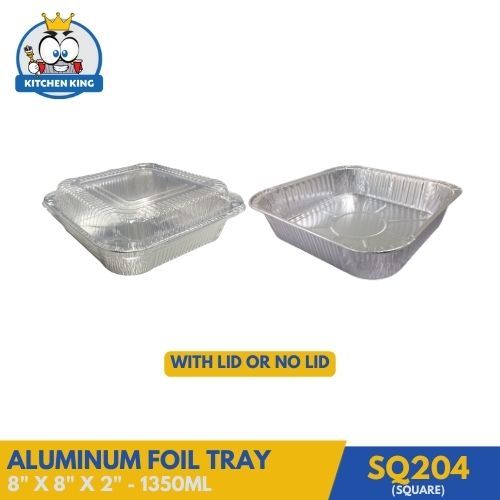 Aluminum Tray Square Pan -SQ204 [10-30PCS] 1350ML(8"x 8"x 2")With Lid/No Lid