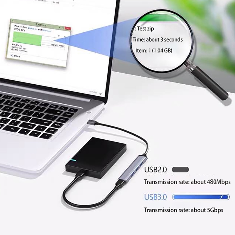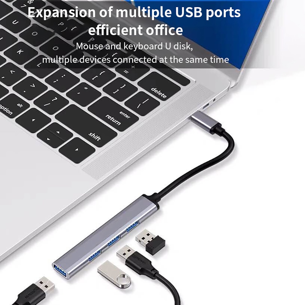 Aluminum Type-C Hub 4 Port USB 3.0 Ultra Slim Portable Splitter Card Reader Adapter for Computer