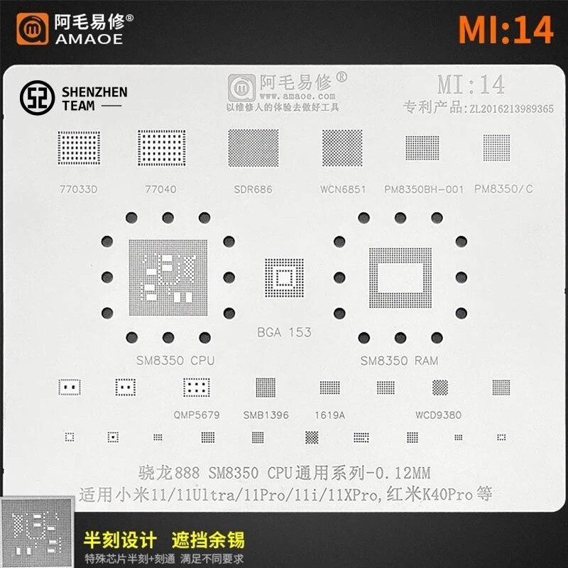 Amaoe Stencil MI1-MI15 For Xiaomi Redmi Phone CPU RAM PMIC AUDIO WIFI Power Charger IC Chip BGA Reballing Stencil