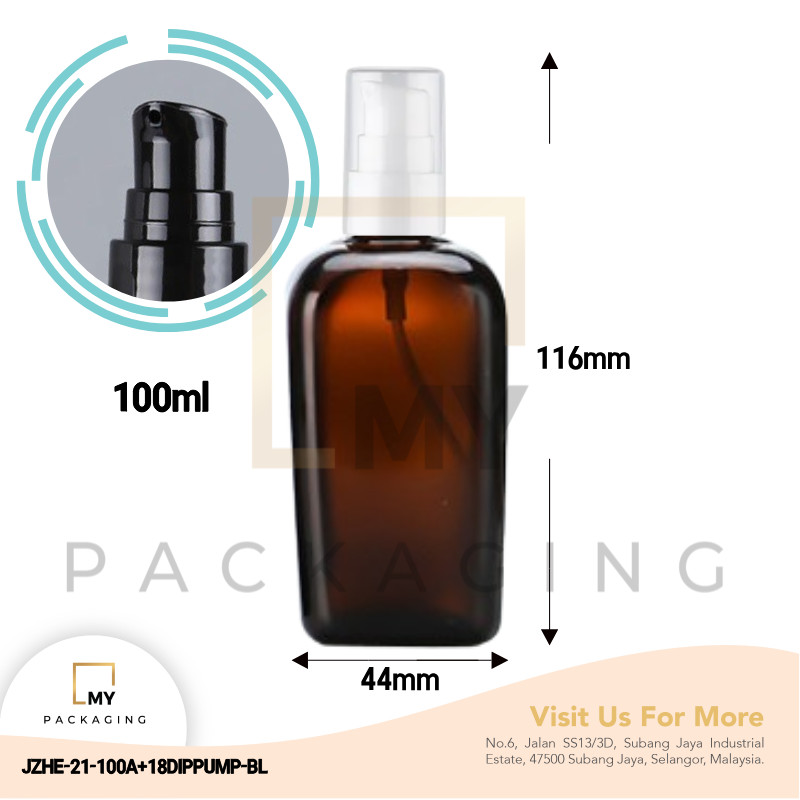 Amber Square Glass Bottle 10ml to 100ml with Plastic Dip Pump for Lotion, Gel Product and beauty products cosmetic btl