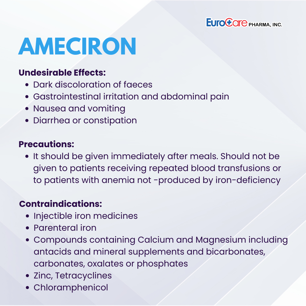 Ameciron Iron 60 mg plus Folic Acid 250 mcg Tablet