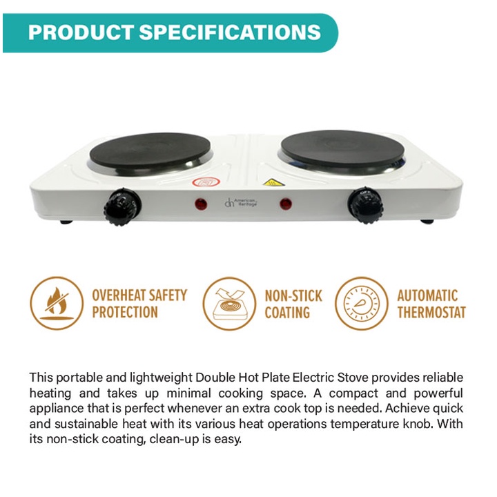 American Heritage Double Hot Plate Electric Stove HEHP-458