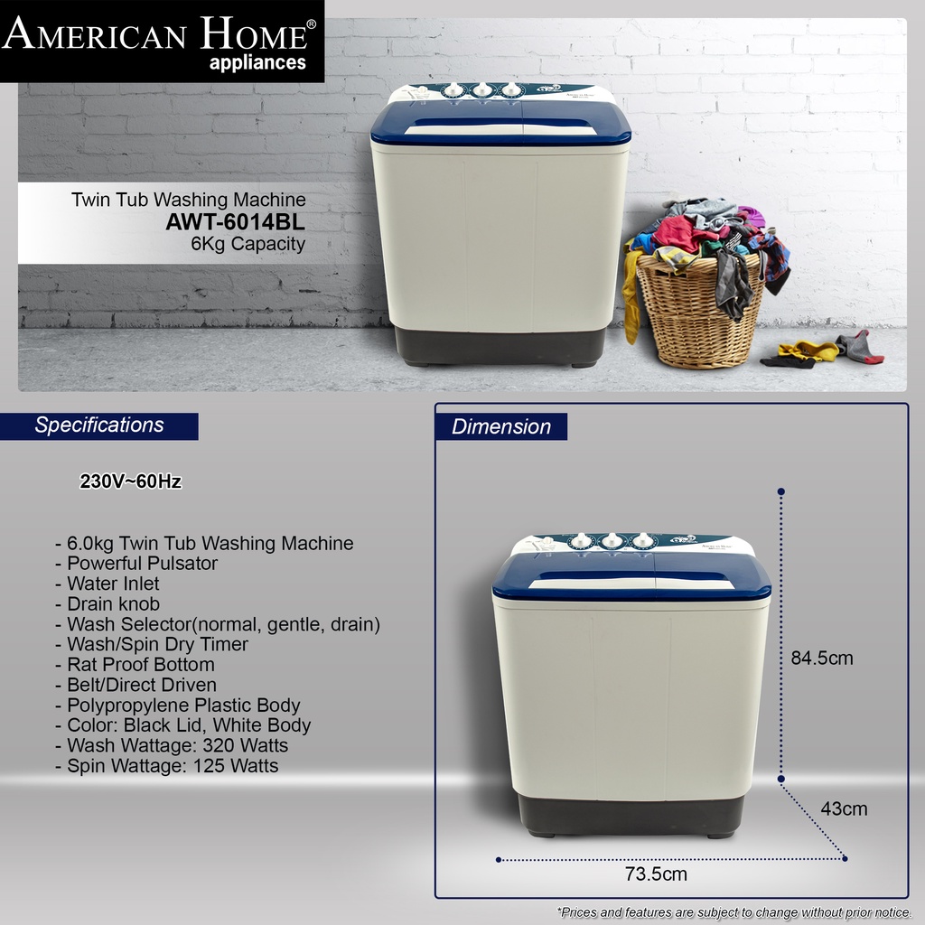 American Home AWT-6014BL 6kg Twin Tub Washing Machine