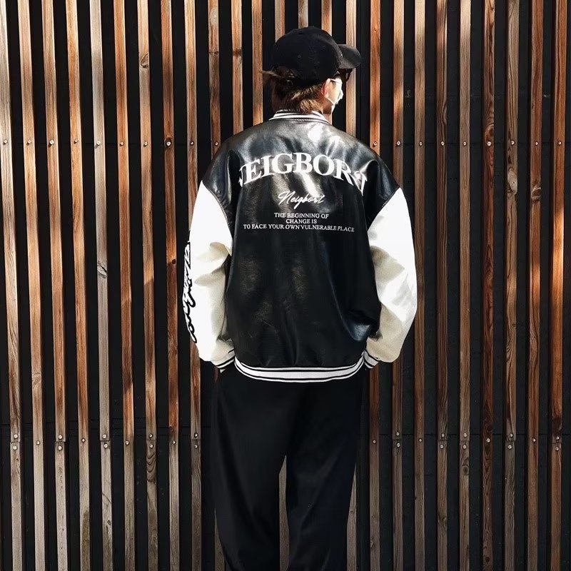 American Retro Letter Embroidered Leather Jacket For Men High Quality PU Leather Jacket For Men Double Layer Embroidery Leather Jacket