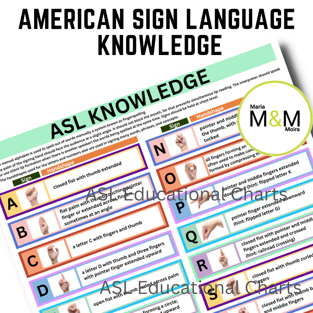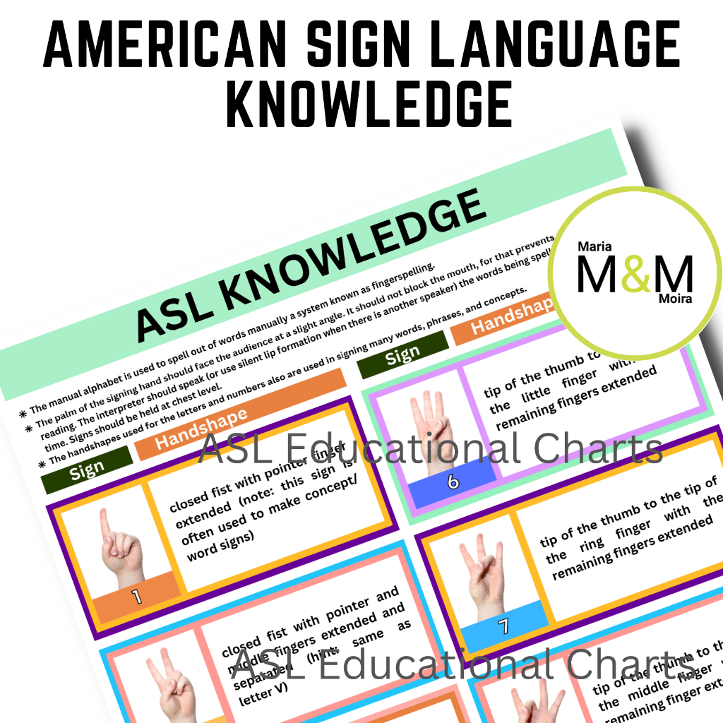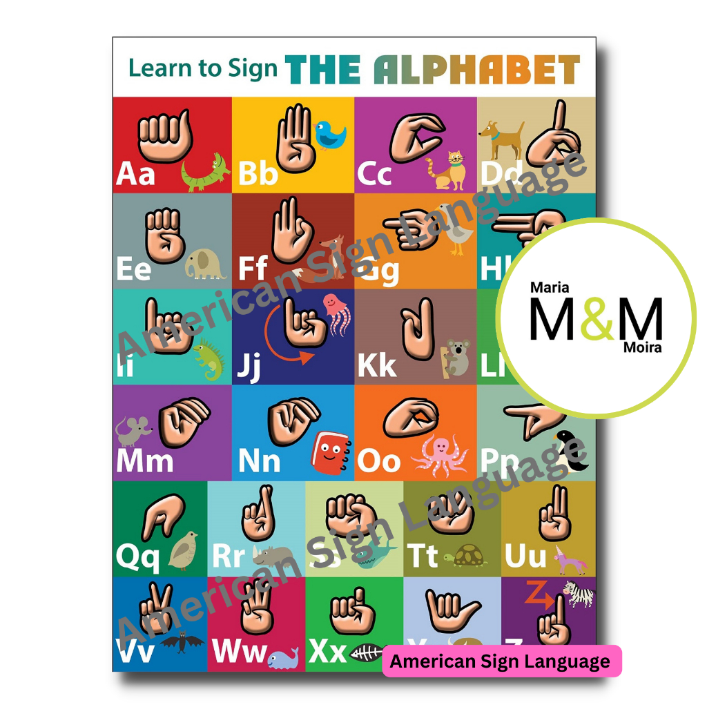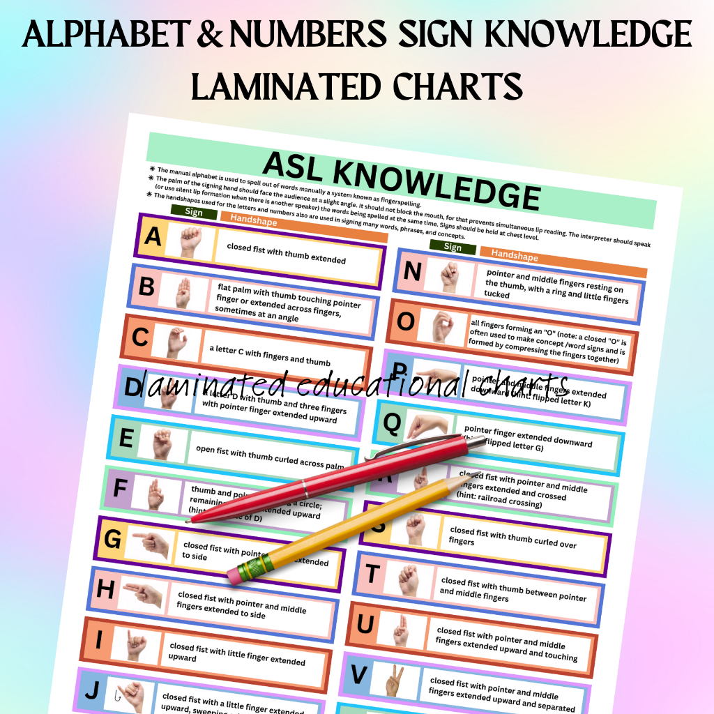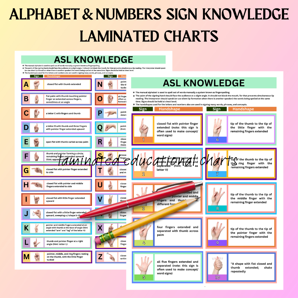 American Sign Language Charts Posters | ASL Signed Alphabet Numbers Shapes I A4 Size Laminated