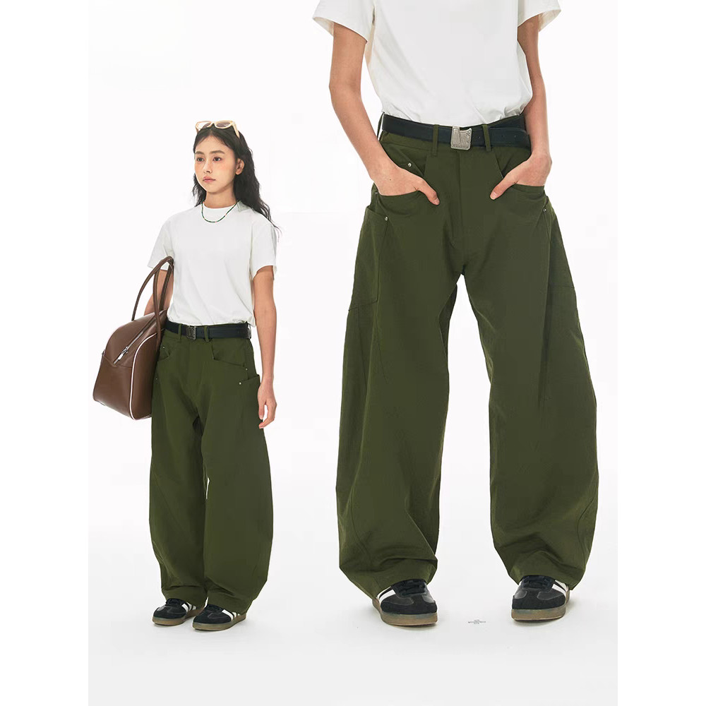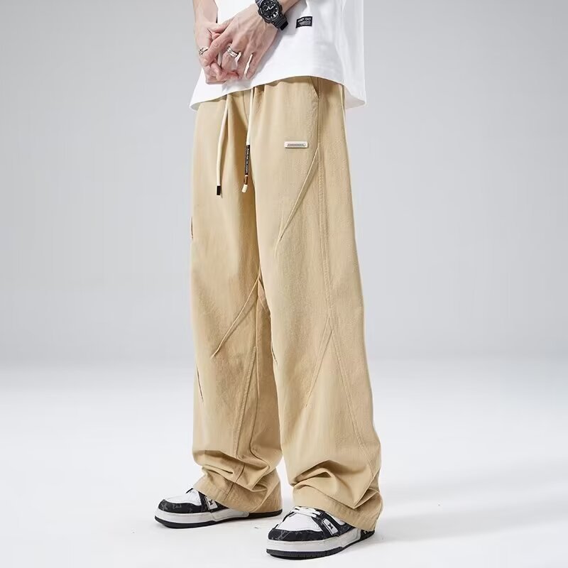 American Solid Color Retro Large Pocket Black Baggy Pants For Men Casual All-Match Unisex Cargo Pants For Men