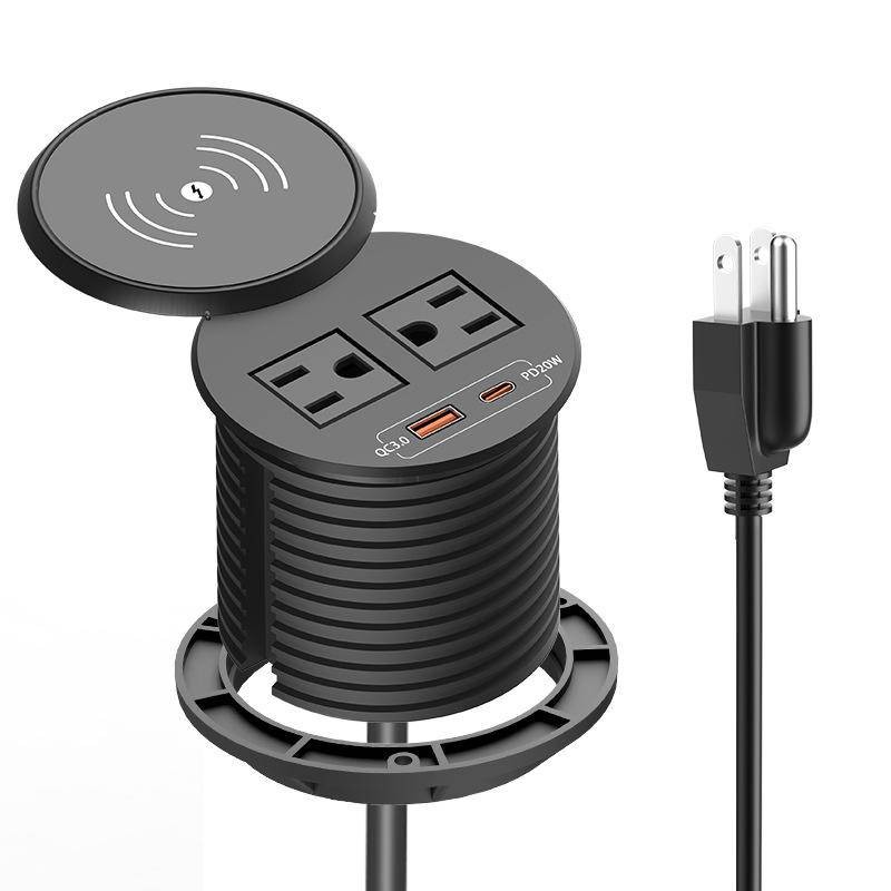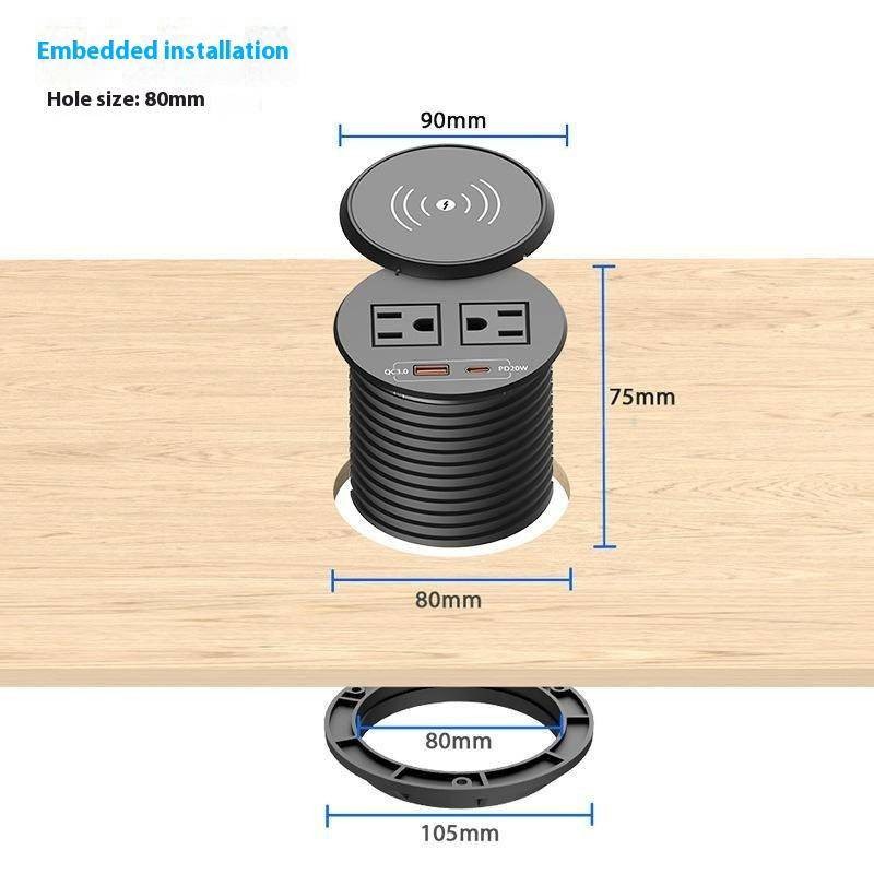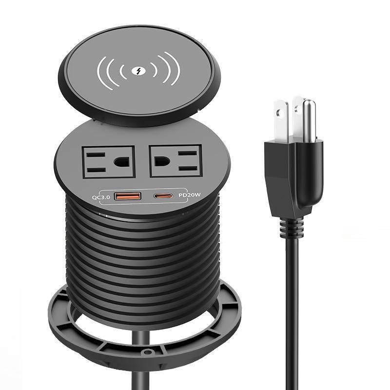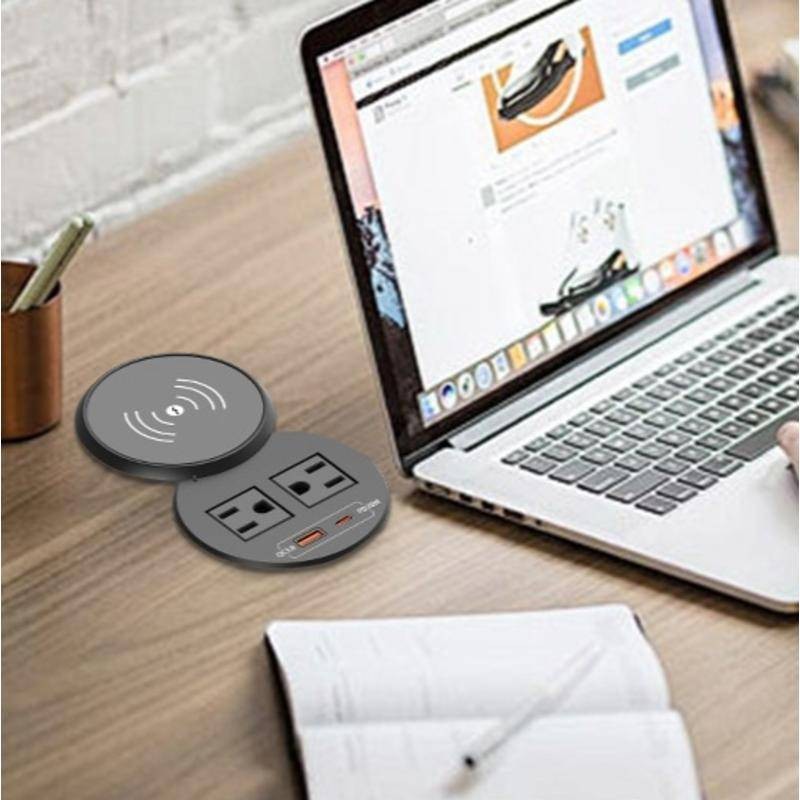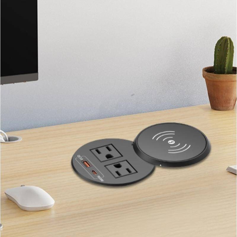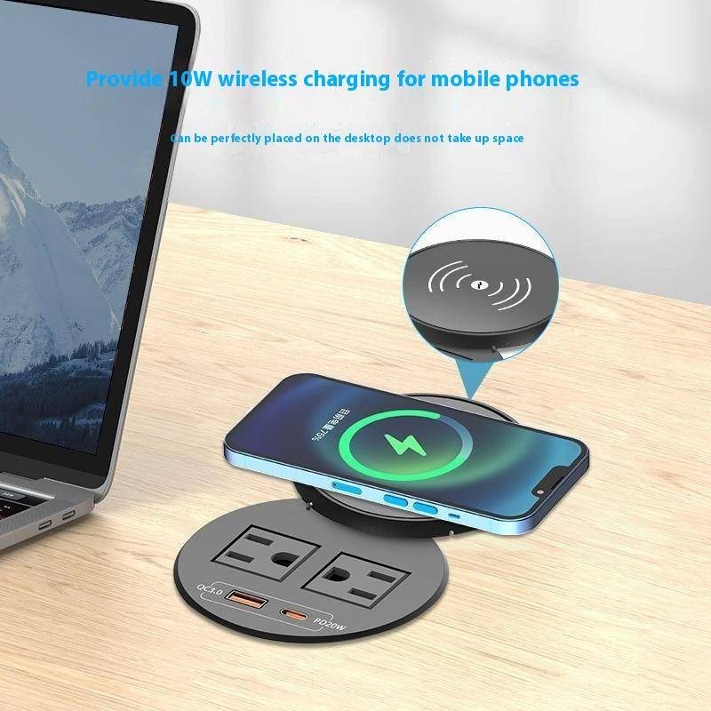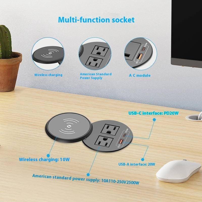American Standard Round Wireless Charger Desktop Socket with USB Fast Charge PD20W High Power American Standard Power Embedded Socket