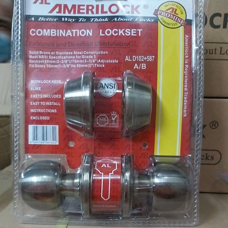 Amerilock Combination Lockset Stainless Door Knob w Single Deadbolt Lock Set Doorknob Dead Bolt SET