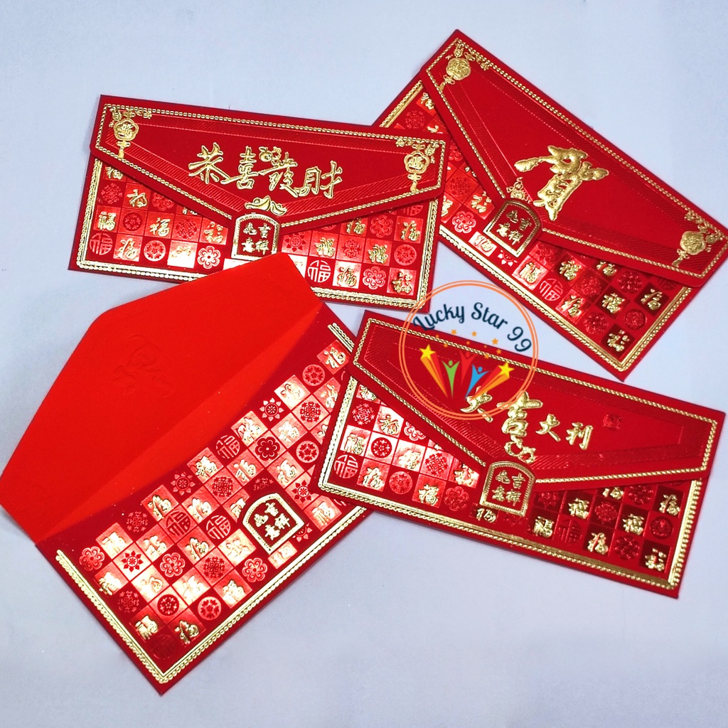 6pcs Ampao Thick Chinese Red Envelope Red Pocket Long Angpao Sobre