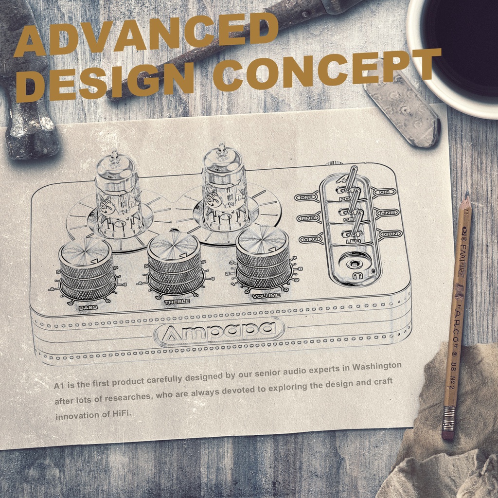 Ampapa A1 Phono Preamplifier / Headphone Amplifier / Hi-Fi Audio Preamp for MM Turntable / Phonograph / Record Player with Treble Bass Tone Control