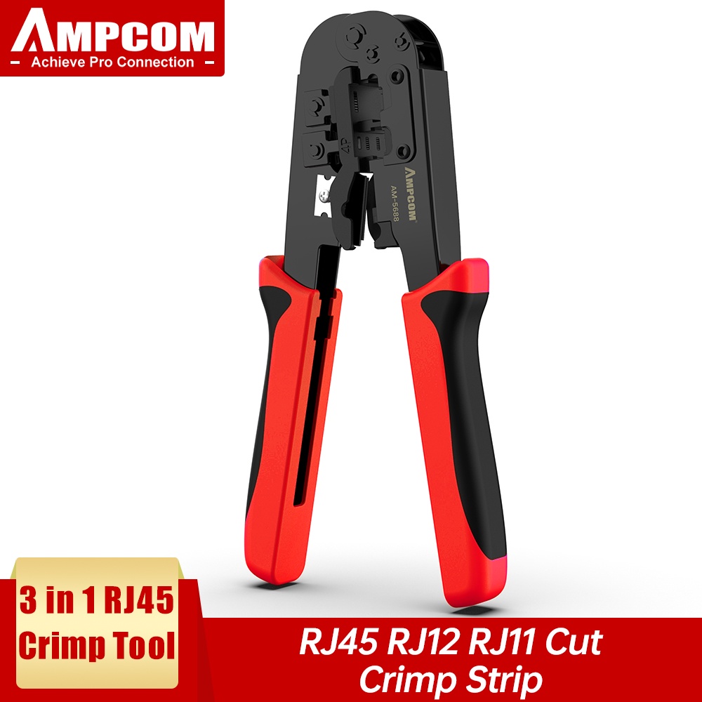Ampcom Crimping Tool Rj45 Dan Rj12, Rj11 Crimper Cutter Stripper Network Cable Crimp Tool For 4P 6P 8P Rj-11 / Rj-12 Rj-45